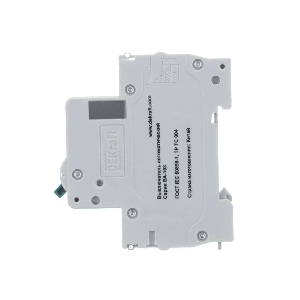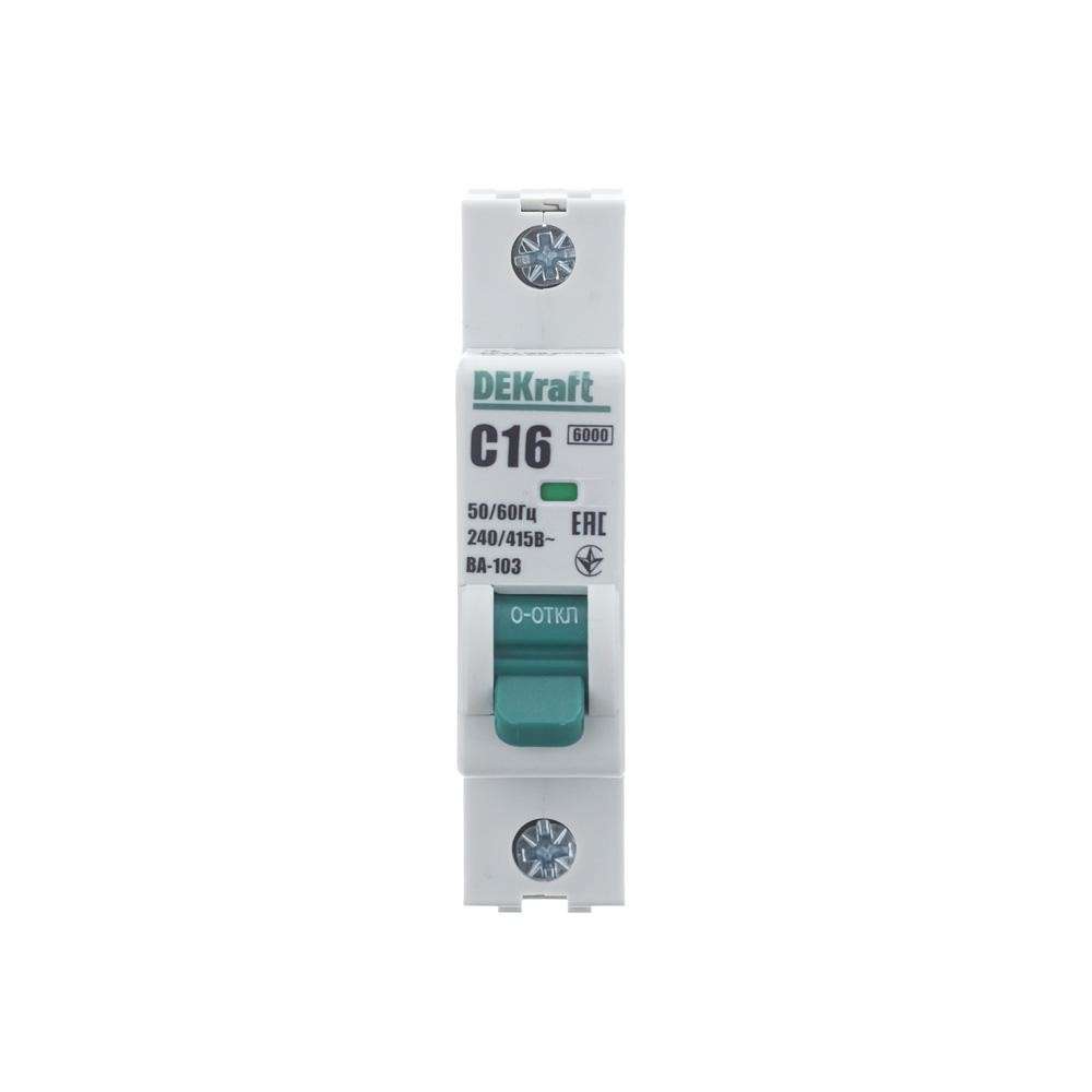 Автоматический выключатель серии ВА-103 NEW DEKraft; 1P; номинальный ток 16 А; характеристика C; отключающая способность 6 кА, что позволяет использовать аппараты в качестве вводных. 5 монолитных заклепок повышают прочность корпуса аппарата. Окошко-индикатор всегда показывает состояние контактов вне зависимости от положения рукоятки управления. Боковые каналы охлаждения повышают стабильность работы при высоких температурах окружающей среды. Есть возможность установки дополнительных аксессуаров с левой стороны устройства. Аппарат на 100% совместим с корпусами и оболочками DEKraft, Systeme Electric.
