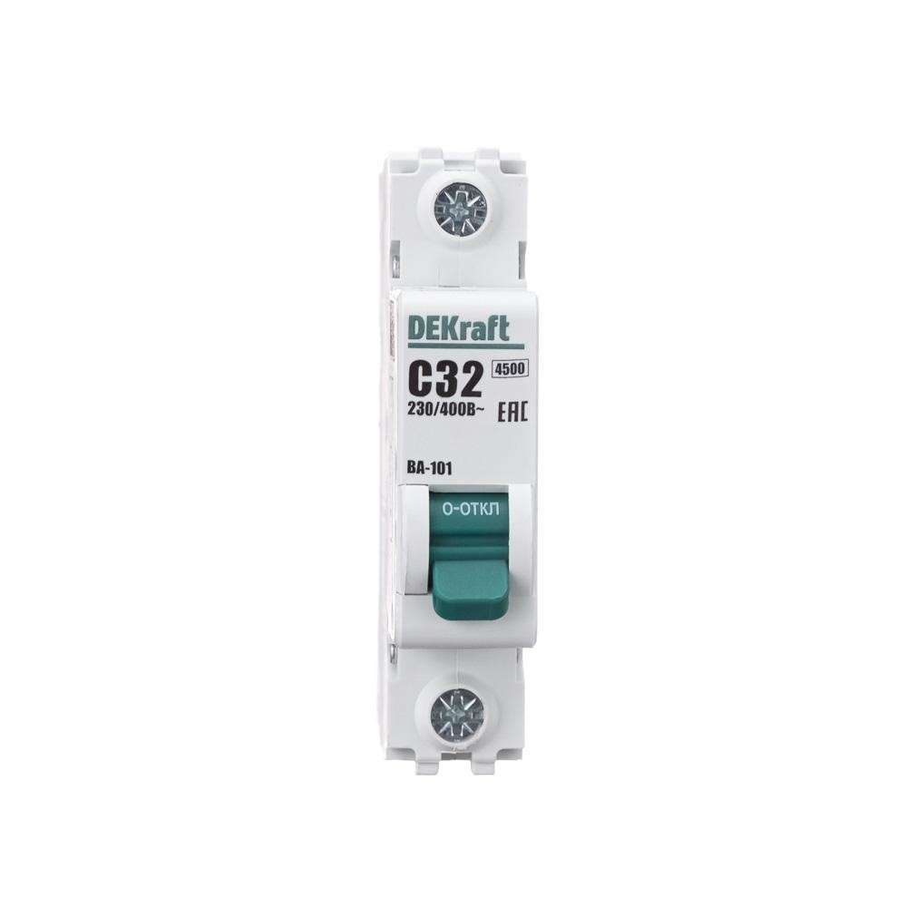 Автоматический выключатель серии ВА-101 DEKraft; 1P; номинальный ток 32 А; характеристика С; отключающая способность 4,5 кА. 5 монолитных заклепок повышают прочность корпуса аппарата. Сплошная лицевая панель обеспечивает безопасность эксплуатации аппарата. Боковые каналы охлаждения повышают стабильность работы при высоких температурах окружающей среды. Есть возможность установки дополнительных аксессуаров с левой стороны устройства. Аппарат на 100% совместим с корпусами DEKraft и Systeme Electric.