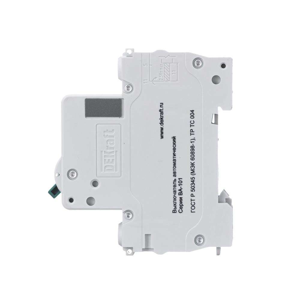 Автоматический выключатель серии ВА-101 DEKraft; 1P; номинальный ток 50 А; характеристика С; отключающая способность 4,5 кА. 5 монолитных заклепок повышают прочность корпуса аппарата. Сплошная лицевая панель обеспечивает безопасность эксплуатации аппарата. Боковые каналы охлаждения повышают стабильность работы при высоких температурах окружающей среды. Есть возможность установки дополнительных аксессуаров с левой стороны устройства. Аппарат на 100% совместим с корпусами DEKraft и Systeme Electric.