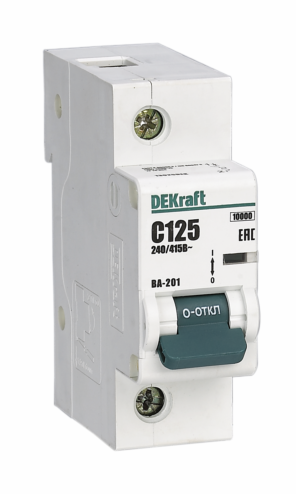 Автоматический выключатель серии ВА-201 DEKraft; 1P; номинальный ток 63 А; характеристика С; отключающая способность 10 кА; ширина модуля 27мм. Монолитная лицевая панель обеспечивает безопасную эксплуатацию аппарата. Окошко-индикатор всегда показывает состояние аппарата вне зависимости от положения рукоятки управления. Двухпозиционная защелка облегчает монтаж выключателя. Аппарат на 100% совместим с корпусами и оболочками DEKraft, Systeme Electric.