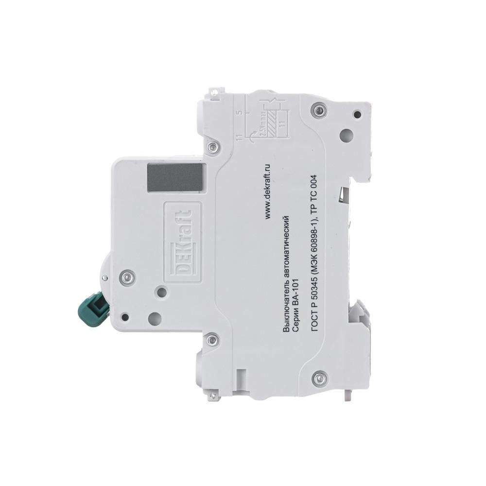 Автоматический выключатель серии ВА-101 DEKraft; 2P; номинальный ток 25 А; характеристика С; отключающая способность 4,5 кА. 5 монолитных заклепок повышают прочность корпуса аппарата. Сплошная лицевая панель обеспечивает безопасность эксплуатации аппарата. Боковые каналы охлаждения повышают стабильность работы при высоких температурах окружающей среды. Есть возможность установки дополнительных аксессуаров с левой стороны устройства. Аппарат на 100% совместим с корпусами DEKraft и Systeme Electric.