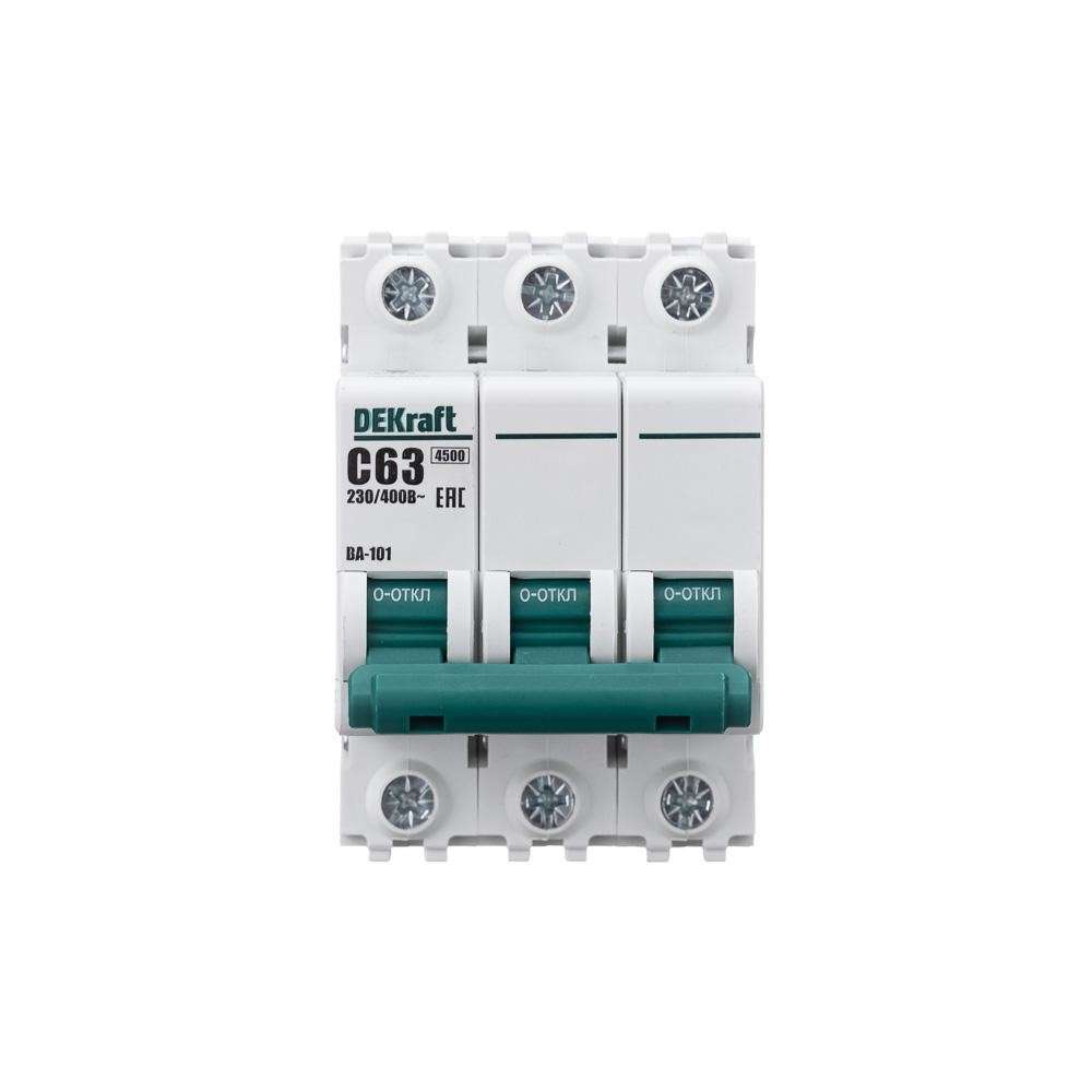 Автоматический выключатель серии ВА-101 DEKraft; 3P; номинальный ток 63 А; характеристика С; отключающая способность 4,5 кА. 5 монолитных заклепок повышают прочность корпуса аппарата. Сплошная лицевая панель обеспечивает безопасность эксплуатации аппарата. Боковые каналы охлаждения повышают стабильность работы при высоких температурах окружающей среды. Есть возможность установки дополнительных аксессуаров с левой стороны устройства. Аппарат на 100% совместим с корпусами DEKraft и Systeme Electric.
