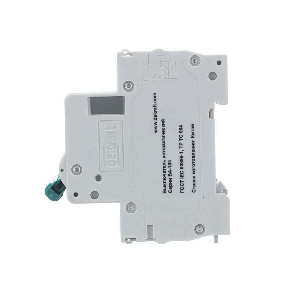 Автоматический выключатель серии ВА-103 NEW DEKraft; 3P; номинальный ток 63 А; характеристика C; отключающая способность 6 кА, что позволяет использовать аппараты в качестве вводных. 5 монолитных заклепок повышают прочность корпуса аппарата. Окошко-индикатор всегда показывает состояние контактов вне зависимости от положения рукоятки управления. Боковые каналы охлаждения повышают стабильность работы при высоких температурах окружающей среды. Есть возможность установки дополнительных аксессуаров с левой стороны устройства. Аппарат на 100% совместим с корпусами и оболочками DEKraft, Systeme Electric.