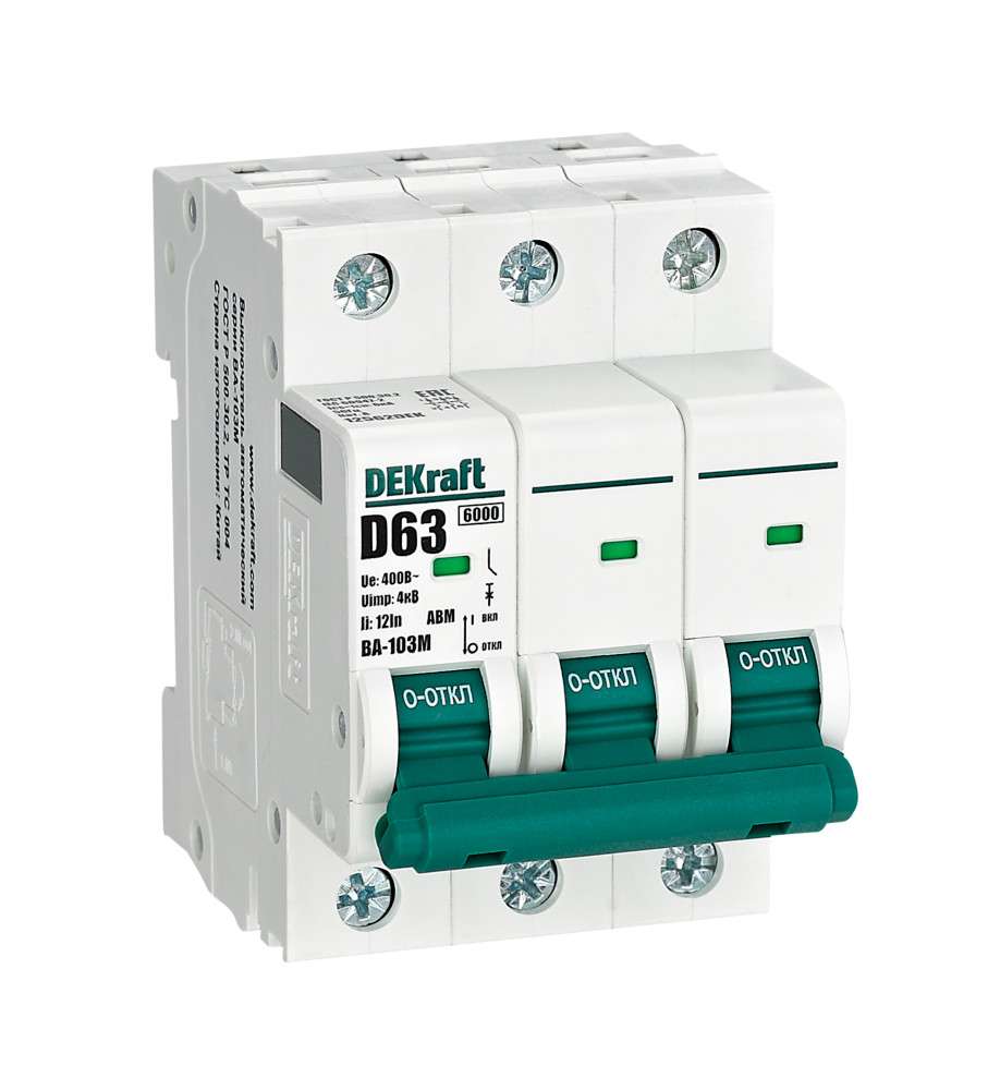 Автоматический выключатель серии ВА-101 DEKraft; 3P; номинальный ток 6 А; характеристика D; отключающая способность 4,5 кА. 5 монолитных заклепок повышают прочность корпуса аппарата. Сплошная лицевая панель обеспечивает безопасность эксплуатации аппарата. Боковые каналы охлаждения повышают стабильность работы при высоких температурах окружающей среды. Есть возможность установки дополнительных аксессуаров с левой стороны устройства. Аппарат на 100% совместим с корпусами DEKraft и Systeme Electric.