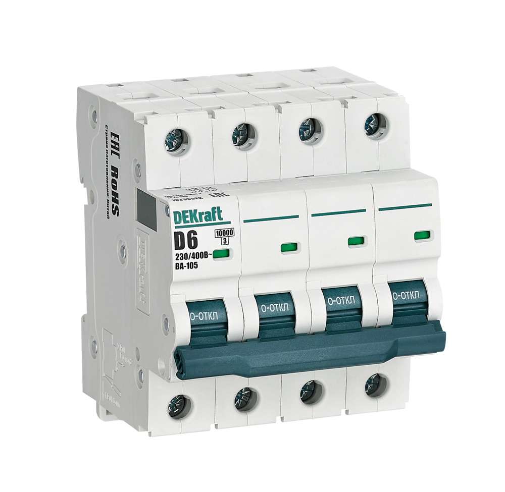 Автоматический выключатель серии ВА-101 DEKraft; 4P; номинальный ток 10 А; характеристика D; отключающая способность 4,5 кА. 5 монолитных заклепок повышают прочность корпуса аппарата. Сплошная лицевая панель обеспечивает безопасность эксплуатации аппарата. Боковые каналы охлаждения повышают стабильность работы при высоких температурах окружающей среды. Есть возможность установки дополнительных аксессуаров с левой стороны устройства. Аппарат на 100% совместим с корпусами DEKraft и Systeme Electric.