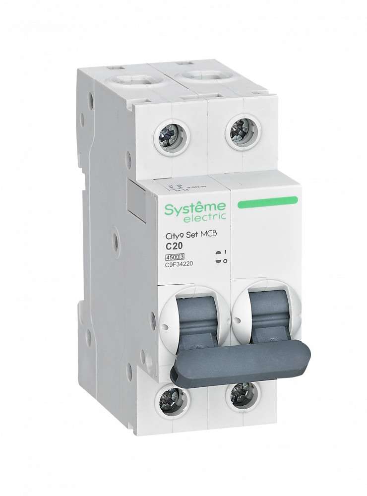 Автоматический выключатель серии Easy9 Schneider Electric, 2-полюсный, номинальный ток 50 А, характеристика С, Icn = 4.5 кА. - Применяется в одно-/двухфазных сетях напряжением до 230/400 В. - Предназначен для защиты от перегрузок и КЗ. - Оснащен механизмом «мгновенного включения». - Ударопрочный корпус из специального пластика с 6 металлическими заклепками. - Безопасные клеммы исключают попадание кабелей в заклеммное пространство. - Возможность опломбирования силовых клемм.