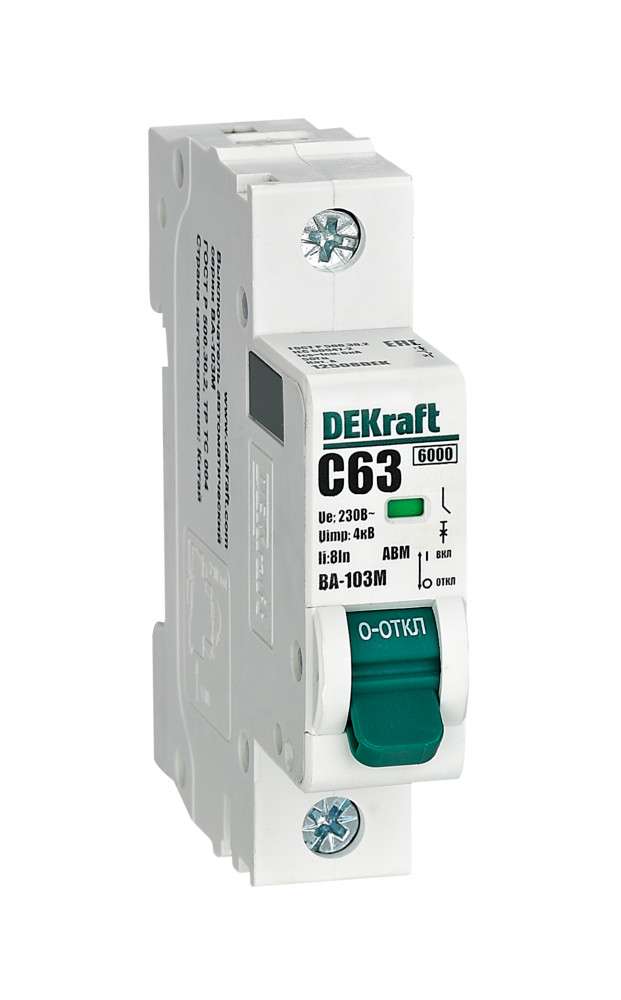 Модульные автоматические выключатели серии NB1-63 Предназначены для применения в сетях переменного тока напряжением 220/400 В частотой 50/60 Гц и номинальным током до 63 А для нечастых включений и отключений нагрузок, а также защиты от перегрузки и короткого замыкания в электроустановках жилых, общественных и промышленных зданий. Автоматические выключатели серии NB1-63 могут оснащаться следующими дополнительными устройствами: вспомогательный контакт состояния XF9; сигнальный контакт аварийного срабатывания XF9J; независимый расцепитель S9 или расцепитель минимального/максимального напряжения V9. Основные характеристики: Номинальный ток: 6 А Количество полюсов: 1Р Тип характеристики мгновенного срабатывания: C Отключающая способность: 10000 A Категория применения: A Класс токоограничения: 3 Механическая износостойкость: 20000 циклов В/О Электрическая износостойкость: 10000 циклов В/О Габаритные размеры (ШхВхГ): 18x86х78 мм Монтаж: на симметричную DIN-рейку 35 мм Подключение: кабель, гребенчатые шины типа PIN и FORK Подключение нагрузки: сверху или снизу Сигнализация: окошко индикации положения главных контактов