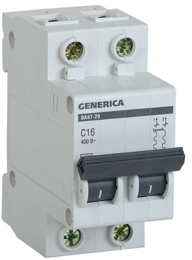 Автоматические выключатели ВА47-29 GENERICA предназначены для защиты распределительных и групповых цепей, имеющих различную нагрузку: – электроприборы, освещение – выключатели с характеристикой В, – двигатели с небольшими пусковыми токами (компрессор, вентилятор) – выключатели с характеристикой C, – двигатели с большими пусковыми токами (подъемные механизмы, насосы) – выключатели с характеристикой D. Автоматические выключатели ВА47-29 рекомендуются к применению в вводно-распределительных устройствах для жилых и общественных зданий.