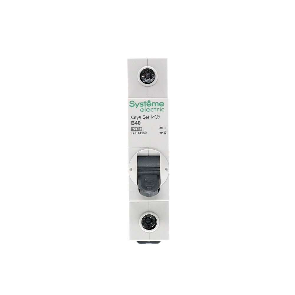 Автоматический выключатель серии City9 Set Systeme Electric, 1-полюсный, номинальный ток 40 А, характеристика B, Icn = 4.5 кА. Применяется в электрических сетях напряжением 230 В. Предназначен для защиты от перегрузок и токов короткого замыкания. Оснащен механизмом «мгновенной коммутации». Ударопрочный корпус из специального пластика с 6 металлическими заклепками. Безопасные клеммы исключают попадание кабелей в заклеммное пространство.