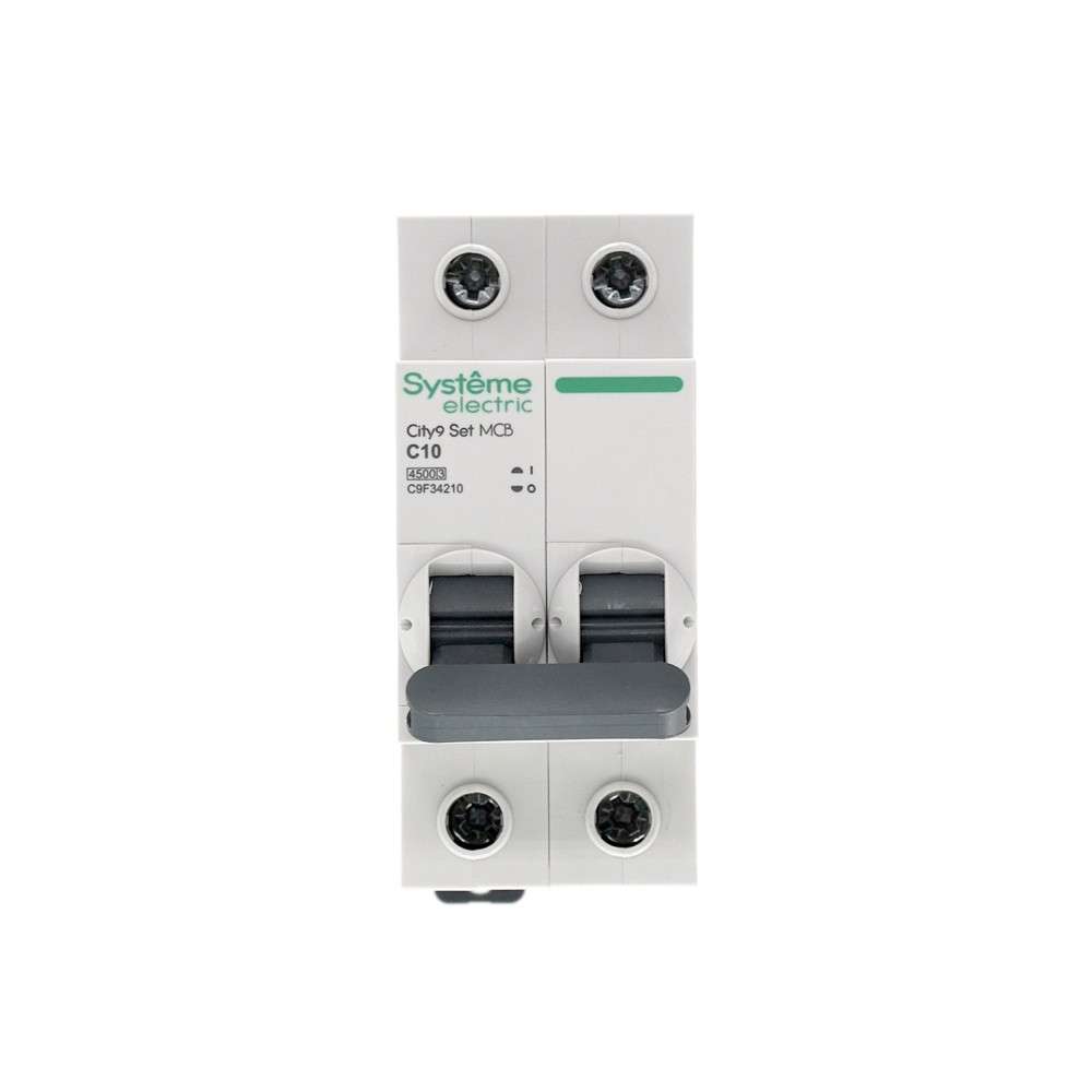 Автоматический выключатель серии City9 Set Systeme Electric, 2-полюсный, номинальный ток 10 А, характеристика С, Icn = 4.5 кА. Применяется в электрических сетях напряжением 230 В. Предназначен для защиты от перегрузок и токов короткого замыкания. Оснащен механизмом «мгновенной коммутации». Ударопрочный корпус из специального пластика с 6 металлическими заклепками. Безопасные клеммы исключают попадание кабелей в заклеммное пространство.