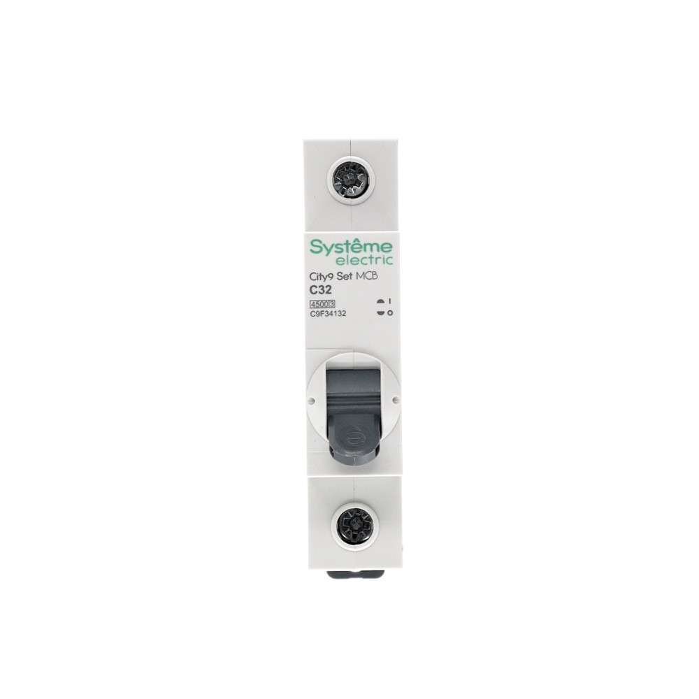 Автоматический выключатель серии City9 Set Systeme Electric, 1-полюсный, номинальный ток 32 А, характеристика С, Icn = 4.5 кА. Применяется в электрических сетях напряжением 230 В. Предназначен для защиты от перегрузок и токов короткого замыкания. Оснащен механизмом «мгновенной коммутации». Ударопрочный корпус из специального пластика с 6 металлическими заклепками. Безопасные клеммы исключают попадание кабелей в заклеммное пространство.