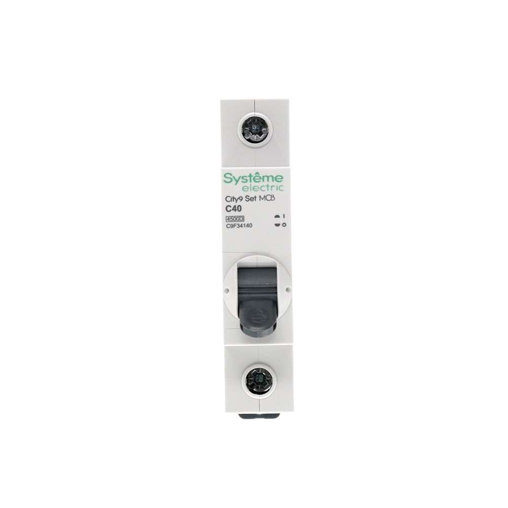 Автоматический выключатель серии City9 Set Systeme Electric, 1-полюсный, номинальный ток 40 А, характеристика С, Icn = 4.5 кА. Применяется в электрических сетях напряжением 230 В. Предназначен для защиты от перегрузок и токов короткого замыкания. Оснащен механизмом «мгновенной коммутации». Ударопрочный корпус из специального пластика с 6 металлическими заклепками. Безопасные клеммы исключают попадание кабелей в заклеммное пространство.