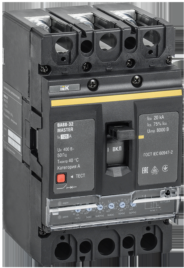 Автоматический выключатель в литом корпусе ВА88 MASTER предназначен для защиты электрических сетей от токов короткого замыкания, токов перегрузки, недопустимых снижений напряжения, а также для проведения тока в нормальном режиме. Автоматические выключатели производятся в 5 типоразмерах, оснащены термомагнитным расцепителем на токи от 16 до 800А и электронным расцепителем на токи от 125 до 800А. Рабочее напряжение 400/690 В. Конструкция автоматического выключателя предусматривает возможность самостоятельной установки дополнительных устройств на объекте заказчика.