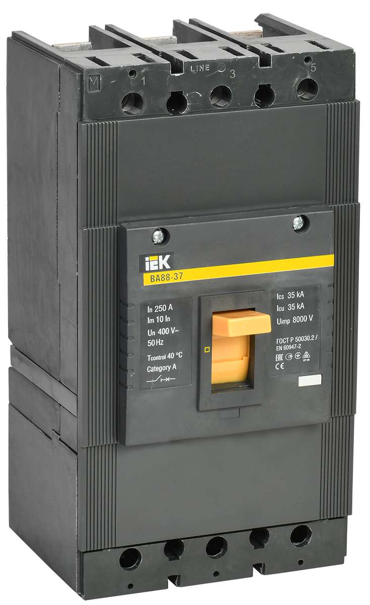 Автоматический выключатель в литом корпусе ВА88 MASTER предназначен для защиты электрических сетей от токов короткого замыкания, токов перегрузки, недопустимых снижений напряжения, а также для проведения тока в нормальном режиме. Автоматические выключатели производятся в 5 типоразмерах, оснащены термомагнитным расцепителем на токи от 16 до 800А и электронным расцепителем на токи от 125 до 800А. Рабочее напряжение 400/690 В. Конструкция автоматического выключателя предусматривает возможность самостоятельной установки дополнительных устройств на объекте заказчика.
