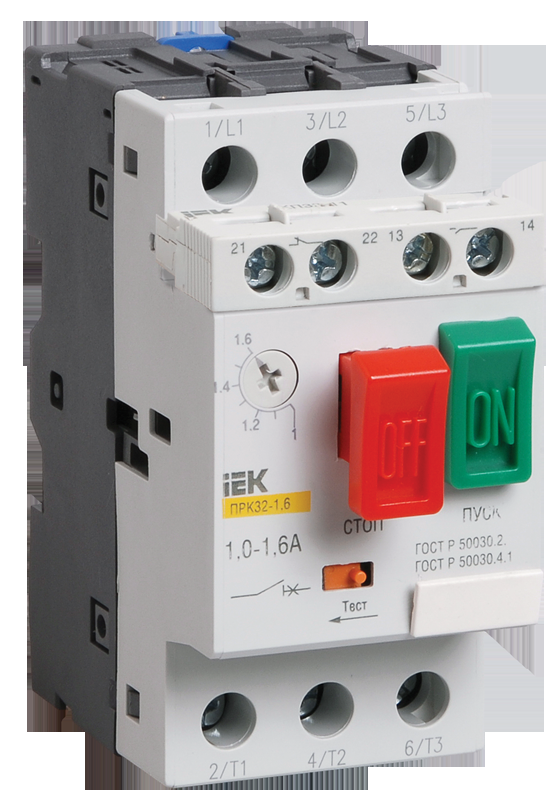 Пускатели серии ПРК-32 торговой марки IEK предназначены для управления и защиты трехфазных асинхронных электродвигателей от перегрузки, коротких замыканий и неполнофазных режимов работы. Совмещают в себе несколько функций: функции "Автомата защиты двигателя" и функции ручного пускателя. Применяются на промышленных объектах, в сельском хозяйстве, строительстве. Также возможно использование для местного управления отдельными электродвигателями, в автоматике жилых и административных сооружений. Категория применения АС-3. По своим конструктивным и техническим характеристикам пускатели кнопочные серии ПРК соответствуют требованиям российских и международных стандартов ГОСТ Р 50030.2-99, ГОСТ Р 50030.4.1-2002. Пускатели кнопочные серии ПРК прошли сертификационные испытания и на их серийный выпуск получен сертификат соответствия РОСС С-МЕ01.В04759. Типоисполнение реле РТИ-3353; РТИ-3355 РТИ-3357; РТИ-3359 РТИ-3361; РТИ-3363 РТИ-3365.