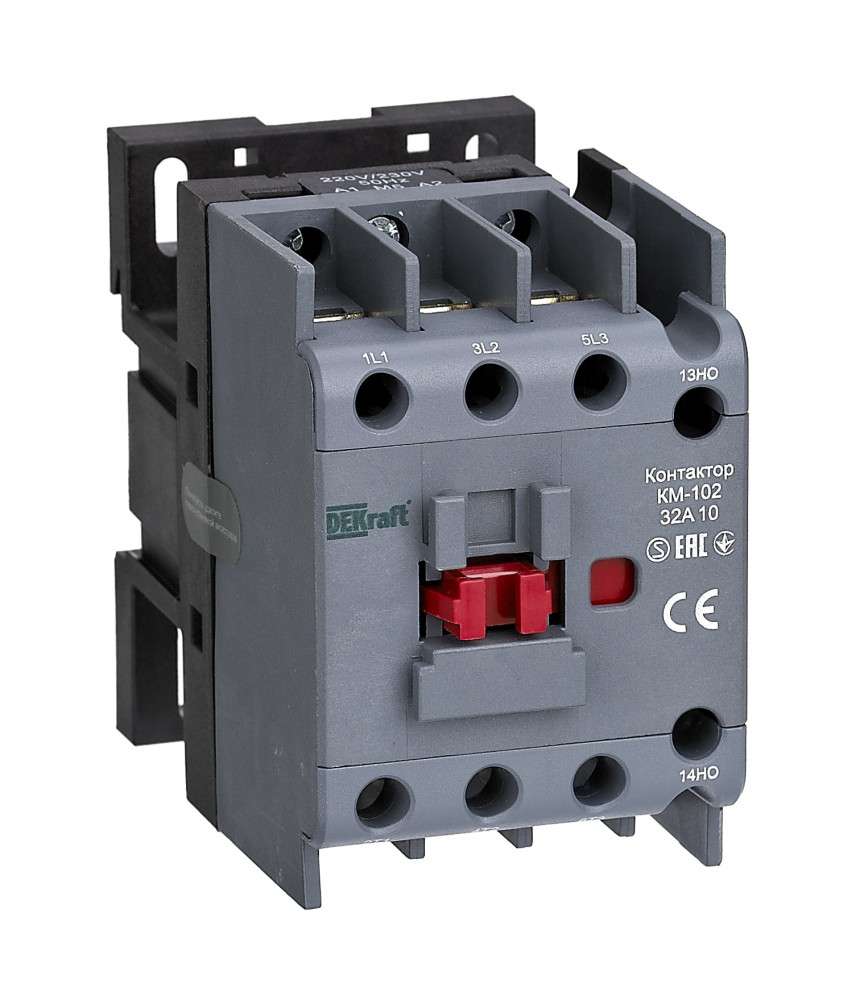 Контактор серии КМ-102 DEKraft; 3P; номинальный ток - 32 А (AC3, AC4); напряжение управления 48 В пер.тока; доп.контакты 1НЗ; установка на стандартную DIN-рейку. Контакторы КМ-102 предназначены для пуска и останова асинхронных двигателей, для коммутации осветительных сетей и конденсаторных батарей в сетях напряжением до 690 В пер.тока. Дополнительные защитные крышки исключают попадание пыли внутрь контактора и обеспечивают защиту от случайного прикосновения.