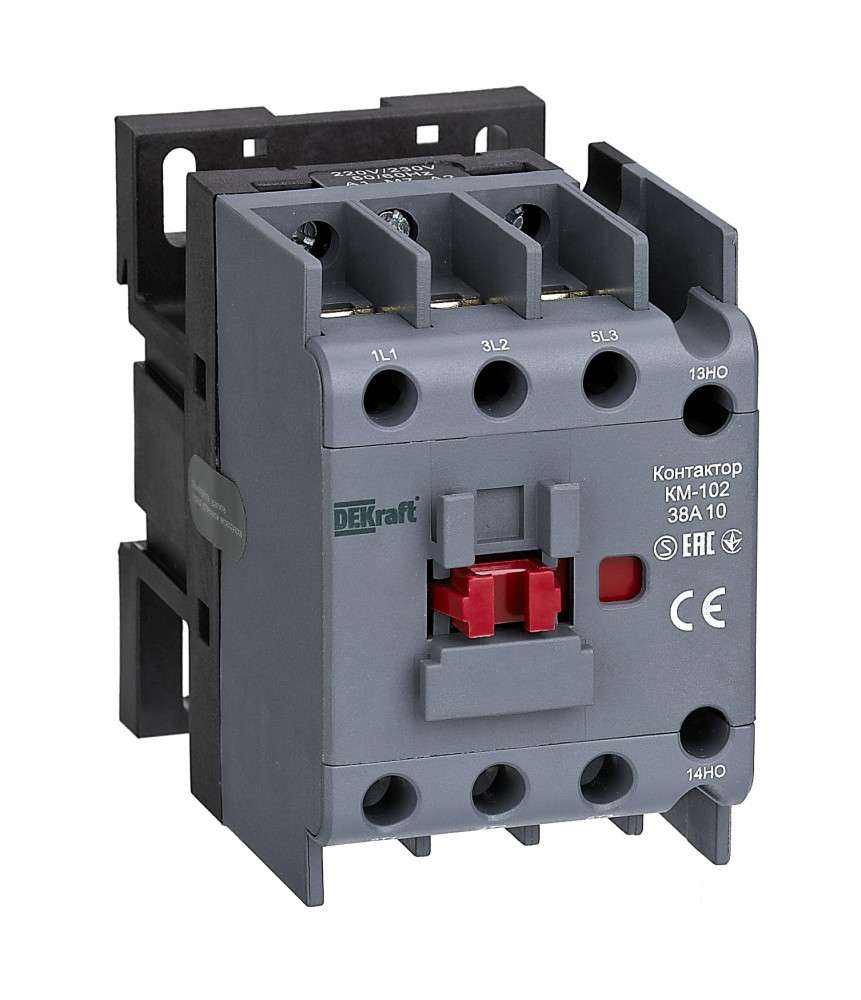 Контактор серии КМ-102 DEKraft; 3P; номинальный ток - 38 А (AC3, AC4); напряжение управления 110 В пер.тока; доп.контакты 1НО; установка на стандартную DIN-рейку. Контакторы КМ-102 предназначены для пуска и останова асинхронных двигателей, для коммутации осветительных сетей и конденсаторных батарей в сетях напряжением до 690 В пер.тока. Дополнительные защитные крышки исключают попадание пыли внутрь контактора и обеспечивают защиту от случайного прикосновения.