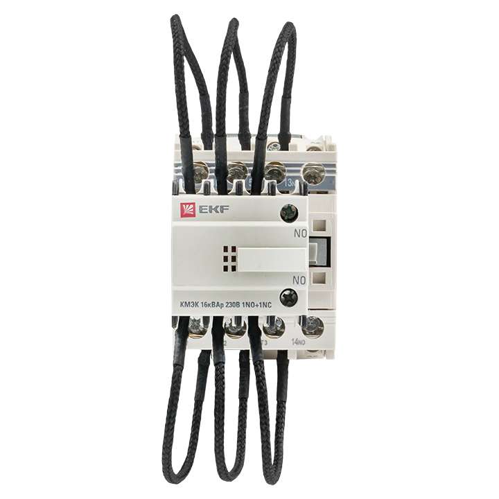 Контакторы для конденсатора КМЭК предназначены для коммутации косинусных конденсаторных батарей в устройствах компенсации реактивной мощности (КРМ). Контакторы для конденсатора КМЭК можно использовать в установках, где пиковый ток не более чем в 20 раз превышает номинальный действующий ток. Контакторы поставляются в комплекте с балластными сопротивлениями и должны использоваться без добавочных индуктивных сопротивлений. Контакторы для конденсатора КМЭК соответствуют ГОСТ Р 50030.4.1-2012 (МЭК 60947-4-1:2009).