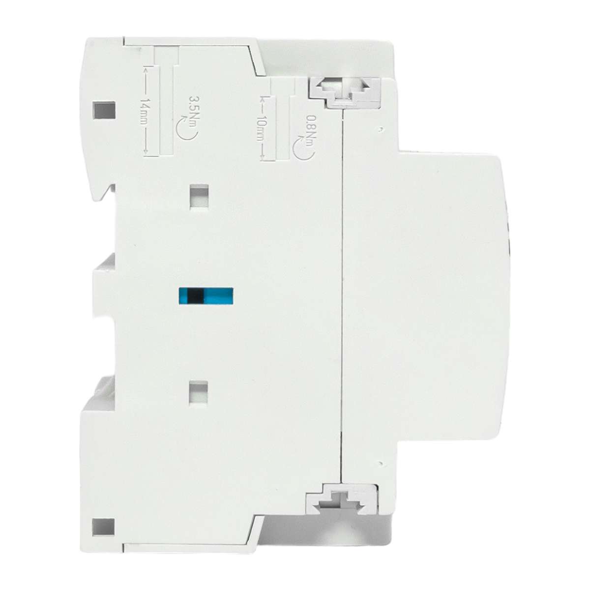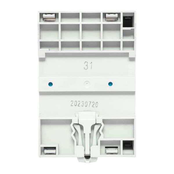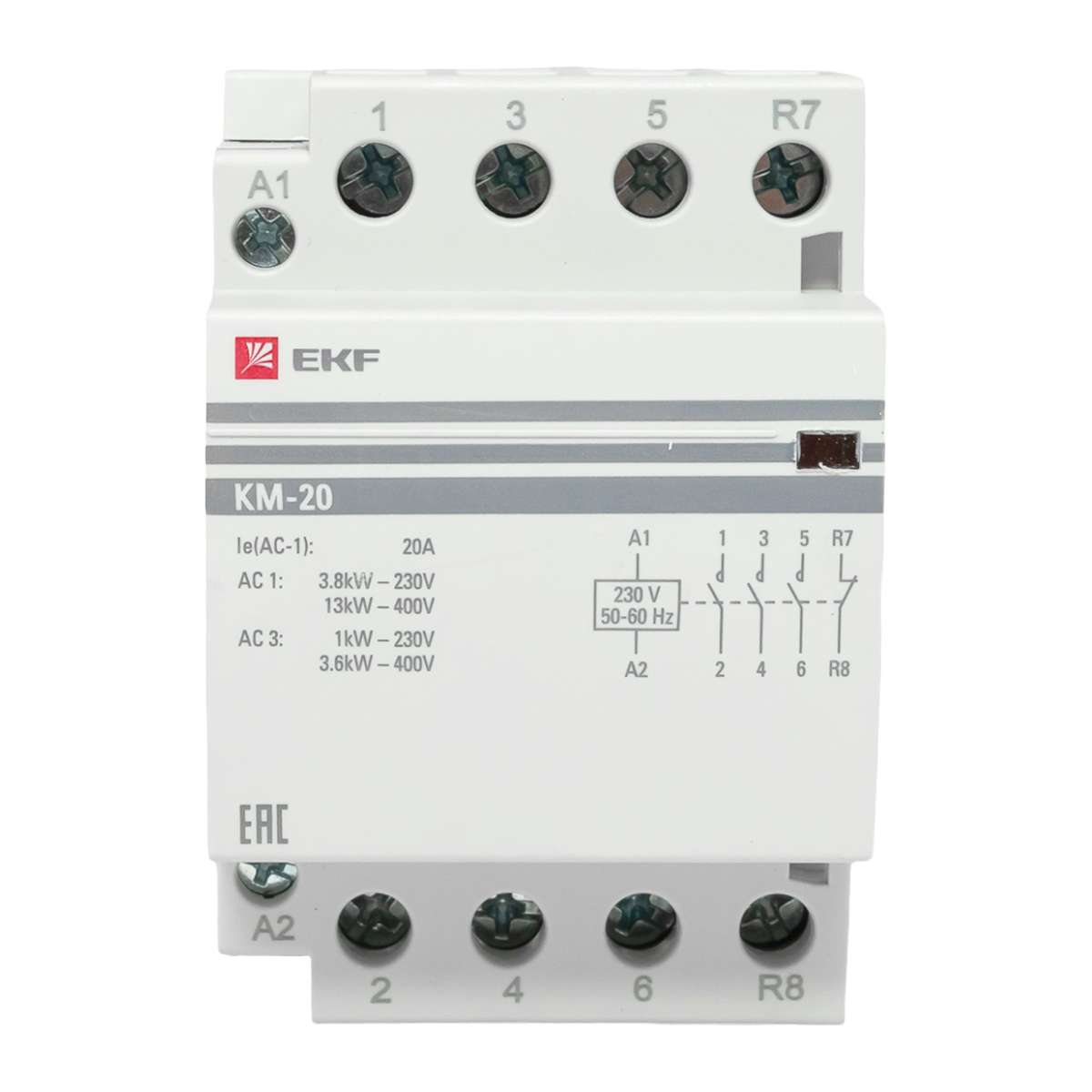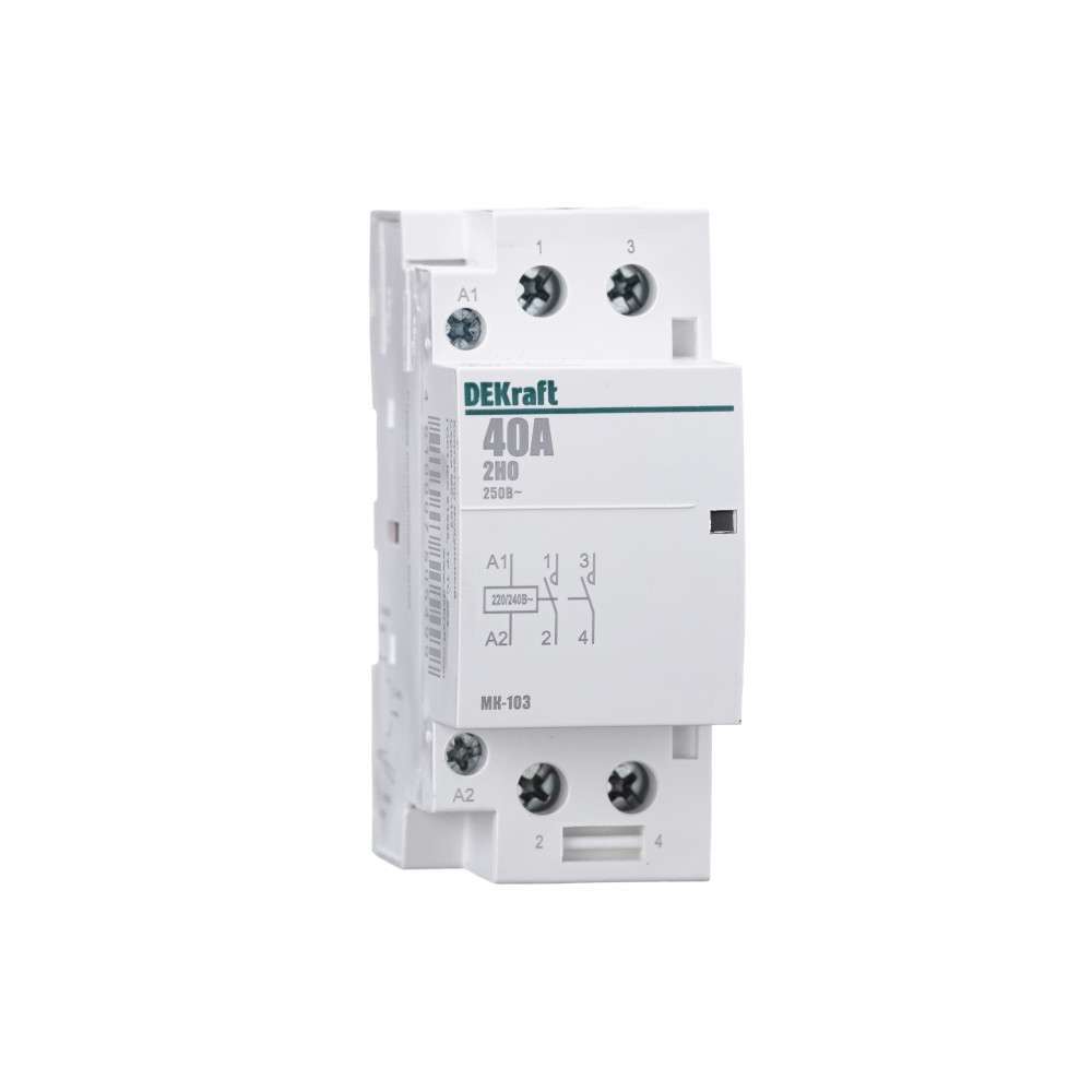 Модульные контакторы представляют из себя контактор в классическом корпусе модульного оборудования. Он состоит из неподвижных контактов, подвижных контактов, которые закреплены в подвижной части магнитной системы. Неподвижная часть магнитной системы закреплена жестко в корпусе КМ. Пружина препятствует смыканию контактов. При подаче напряжения на катушку управления в магнитной системе контактора возникает магнитное поле, которое, преодолевая сопротивление пружины, смыкает магнитную систему и замыкает контакты. При отключении напряжения с катушки управления пружина размыкает контакты. Возможна коммутация алюминиевым и медным проводом.