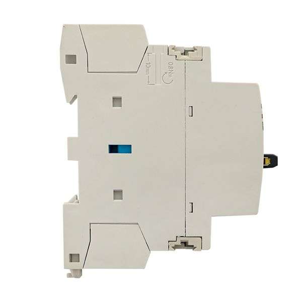 Модульные контакторы представляют из себя контактор в классическом корпусе модульного оборудования. Он состоит из неподвижных контактов, подвижных контактов, которые закреплены в подвижной части магнитной системы. Неподвижная часть магнитной системы закреплена жестко в корпусе КМ. Пружина препятствует смыканию контактов. При подаче напряжения на катушку управления в магнитной системе контактора возникает магнитное поле, которое, преодолевая сопротивление пружины, смыкает магнитную систему и замыкает контакты. При отключении напряжения с катушки управления пружина размыкает контакты. Возможна коммутация алюминиевым и медным проводом.