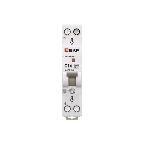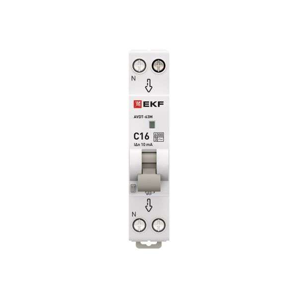 Автоматический выключатель дифференциального тока АВДТ-63 EKF PROxima представляет аппарат, сочетающий функции автоматического выключателя с электромеханическим или электронным УЗО. При обнаружении автоматическим выключателем в защищаемом участке сети тока утечки (повреждения) на землю или сверхтока (тока перегрузки иликороткого замыкания) происходит срабатывание устройства, приводящее к отключению защищаемой сети. Возможна коммутация алюминиевым и медным проводником.Автоматический выключатель дифференциального тока малогабаритный АВДТ-63М EKF PROxima представляет аппарат, сочетающий функции автоматического выключателя с электронным УЗО типа АС в компактном корпусе шириной один модуль. При обнаружении автоматическим выключателем на защищаемом участке сети тока утечки (повреждения) на землю или сверхтока (тока перегрузки или короткого замыкания) происходит срабатывание устройства, приводящее к отключению защищаемой сети. Особое отличие дифференциальных автоматических выключателей EKF с электронным УЗО – в наличии блока защиты от перенапряжения. Возможна коммутация алюминиевым и медным проводом.