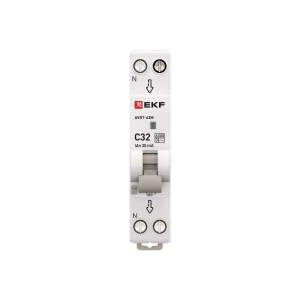 Автоматический выключатель дифференциального тока АВДТ-63 EKF PROxima представляет аппарат, сочетающий функции автоматического выключателя с электромеханическим или электронным УЗО. При обнаружении автоматическим выключателем в защищаемом участке сети тока утечки (повреждения) на землю или сверхтока (тока перегрузки иликороткого замыкания) происходит срабатывание устройства, приводящее к отключению защищаемой сети. Возможна коммутация алюминиевым и медным проводником.Автоматический выключатель дифференциального тока малогабаритный АВДТ-63М EKF PROxima представляет аппарат, сочетающий функции автоматического выключателя с электронным УЗО типа АС в компактном корпусе шириной один модуль. При обнаружении автоматическим выключателем на защищаемом участке сети тока утечки (повреждения) на землю или сверхтока (тока перегрузки или короткого замыкания) происходит срабатывание устройства, приводящее к отключению защищаемой сети. Особое отличие дифференциальных автоматических выключателей EKF с электронным УЗО – в наличии блока защиты от перенапряжения. Возможна коммутация алюминиевым и медным проводом.