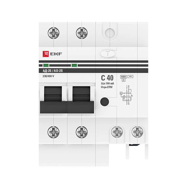 Дифференциальный автоматический выключатель АД-2(4) (S) EKF PROxima представляет собой аппарат, сочетающий функции автоматического выключателя с устройством защитного отключения. При обнаружении автоматическим выключателем в защищаемом участке сети тока утечки (повреждения) на землю или сверхтока (тока перегрузки или короткого замыкания) происходит срабатывание устройства, приводящее к отключению защищаемой сети. Особое отличие дифференциальных автоматов EKF – в наличии встроенного блока защиты от перенапряжения. АД-2 и АД-4 EKF PROxima выпускаются в стандартном и селективном (АД-2S, АД-4S) исполнениях.