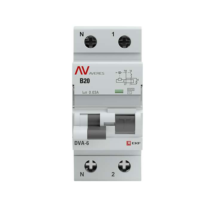 Автоматические выключатели дифференциального тока DVA-6 AVERES предназначены для защиты от токов утечки, перегрузки и короткого замыкания. Особая конструкция рычага обеспечивает информативность устройства, указывая на причину срабатывания (опущена только часть рычага – короткое замыкание или перегрузка, опущены обе части рычага – ток утечки). После устранения причины срабатывания для повторного взведения рукоятку устройства нужно сначала опустить вниз до конца, а затем взвести (взведение из положения trip невозможно). Гарантийные обязательства составляют 10 лет.