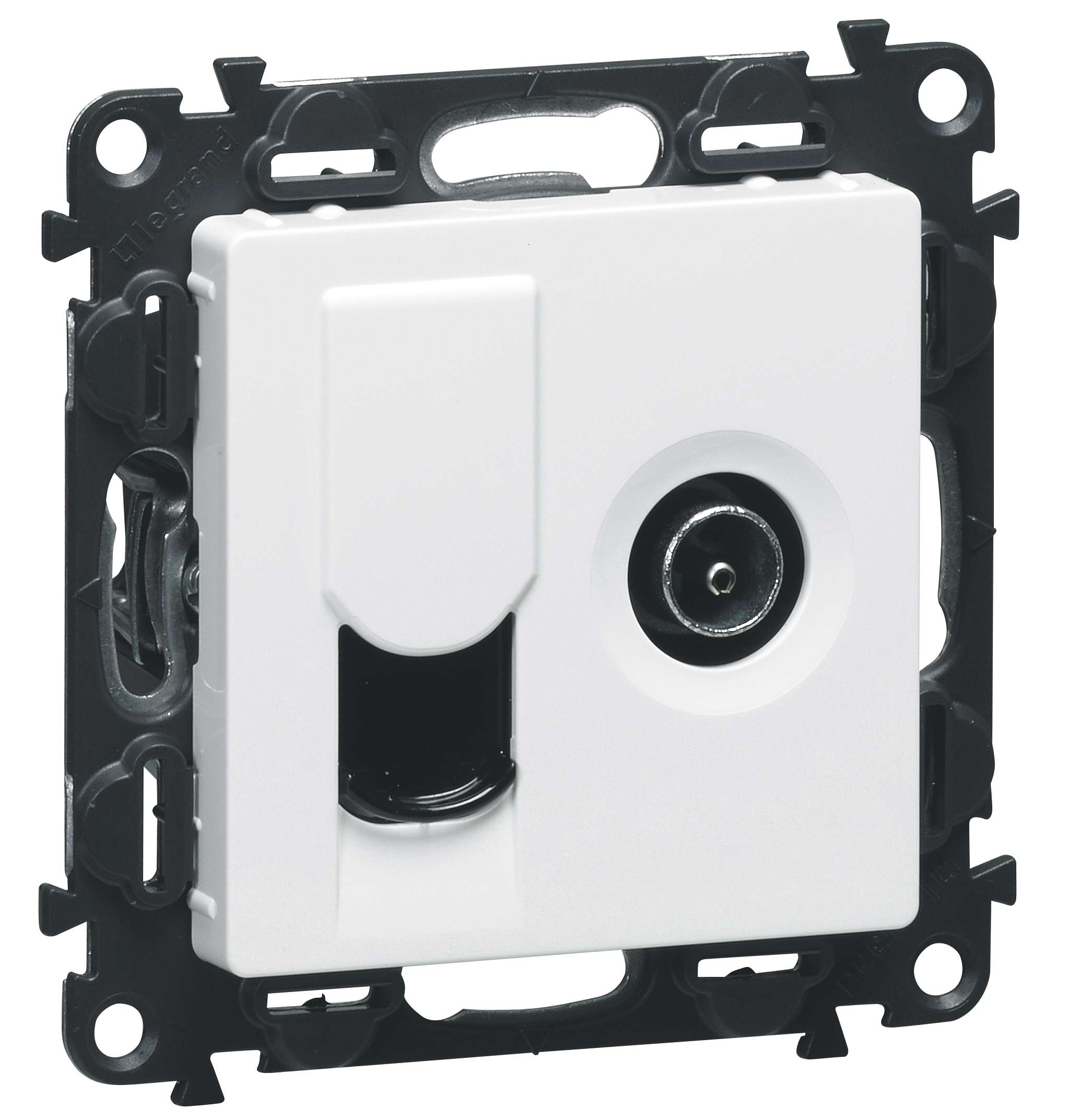 Лицевая панель - Программа Celiane - розетка RJ 45 + розетка ТV тип F Кат. № 0 673 37 + 0 673 82 - слоновая кость