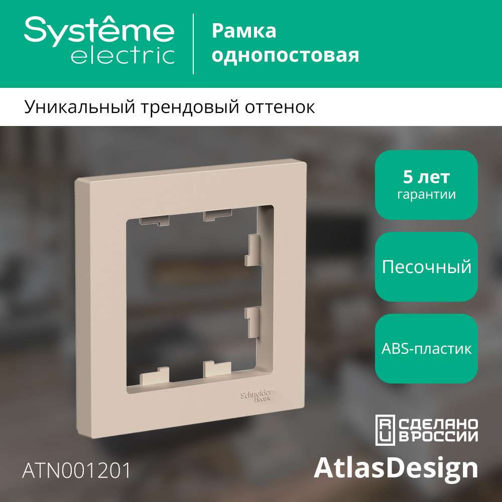 Рамка Systeme Electric (ранее Schneider Electric) серии AtlasDesign в цвете ПЕСОЧНЫЙ одинарная. - Лицевые детали из качественного ABS-пластика, устойчивого к царапинам и УФ-излучению. - Позволяет гармонично вписать электроустановочное изделие в интерьер помещения.