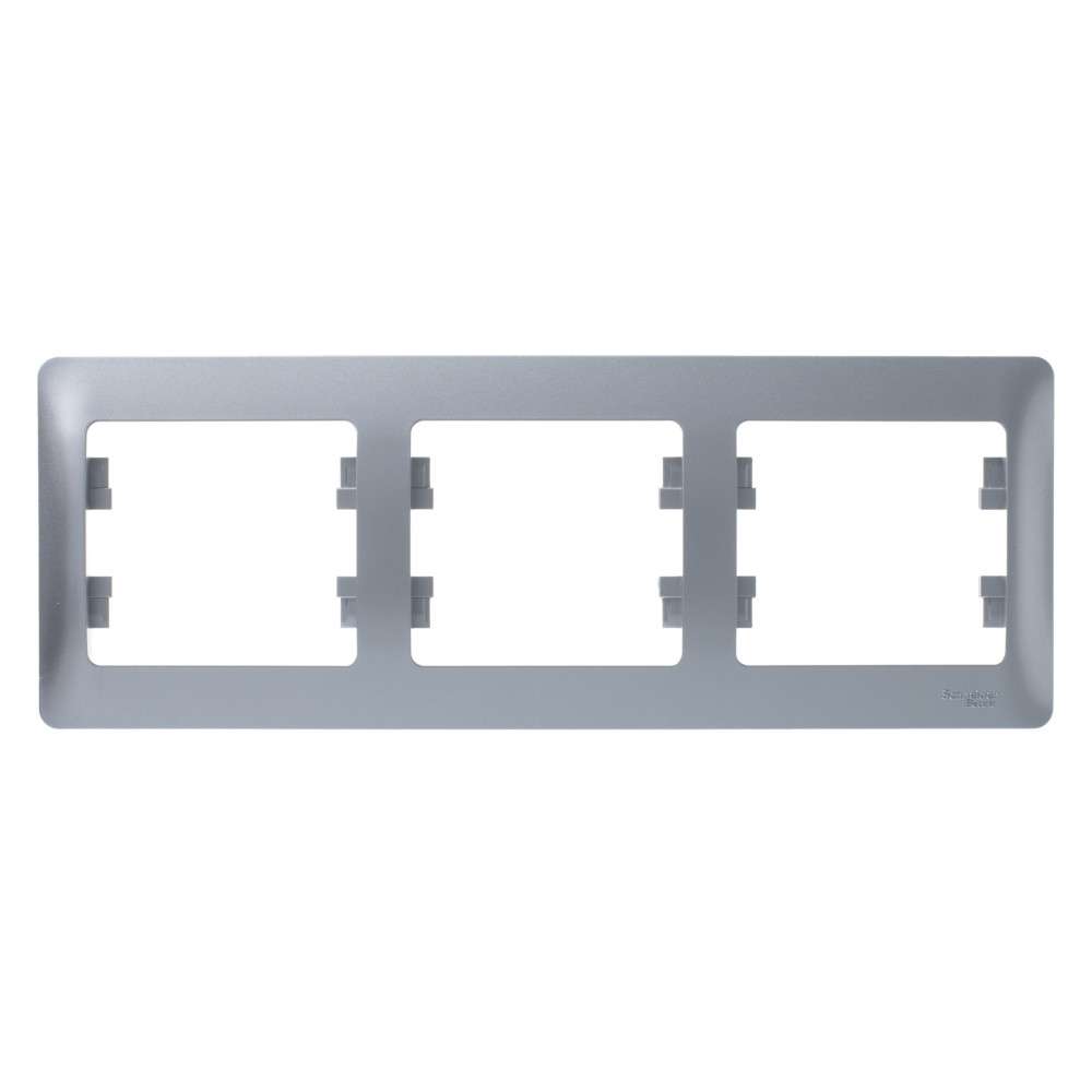 Рамка Systeme Electric (ранее Schneider Electric) серии Glossa (цвет алюминий) трёхместная. - Устанавливается в вертикальном положении. - Выполнена из материала PС+ASA, стойкого к УФ-излучению и появлению царапин. - Позволяет гармонично вписать электроустановочное изделие в интерьер помещения.