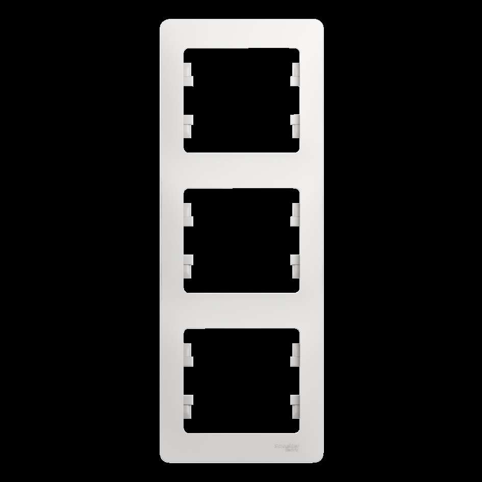 Рамка Systeme Electric (ранее Schneider Electric) серии Glossa (цвет белый) трёхместная. - Устанавливается в вертикальном положении. - Выполнена из материала PС+ASA, стойкого к УФ-излучению и появлению царапин. - Позволяет гармонично вписать электроустановочное изделие в интерьер помещения.