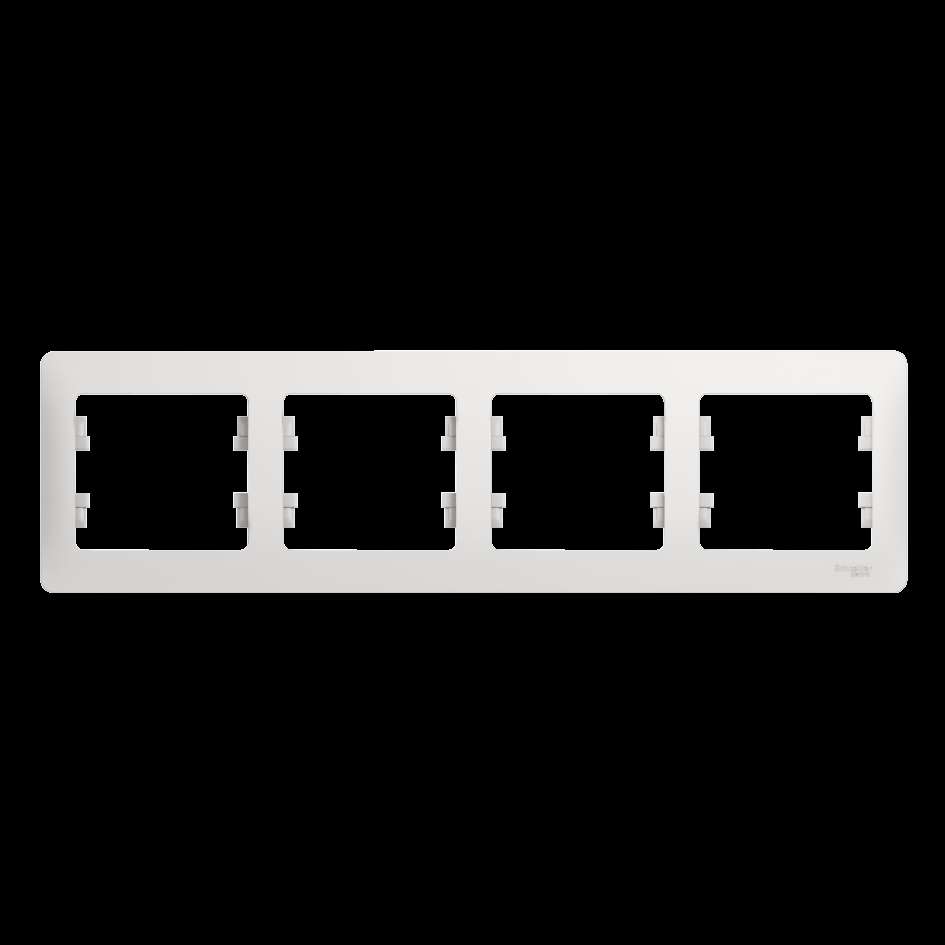 Рамка Systeme Electric (ранее Schneider Electric) серии Glossa (цвет белый) четырёхместная. - Устанавливается в горизонтальном положении. - Выполнена из материала PС+ASA, стойкого к УФ-излучению и появлению царапин. - Позволяет гармонично вписать электроустановочное изделие в интерьер помещения.
