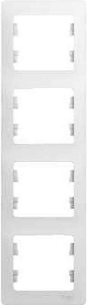 Рамка Systeme Electric (ранее Schneider Electric) серии Glossa (цвет белый) четырёхместная. - Устанавливается в вертикальном положении. - Выполнена из материала PС+ASA, стойкого к УФ-излучению и появлению царапин. - Позволяет гармонично вписать электроустановочное изделие в интерьер помещения.