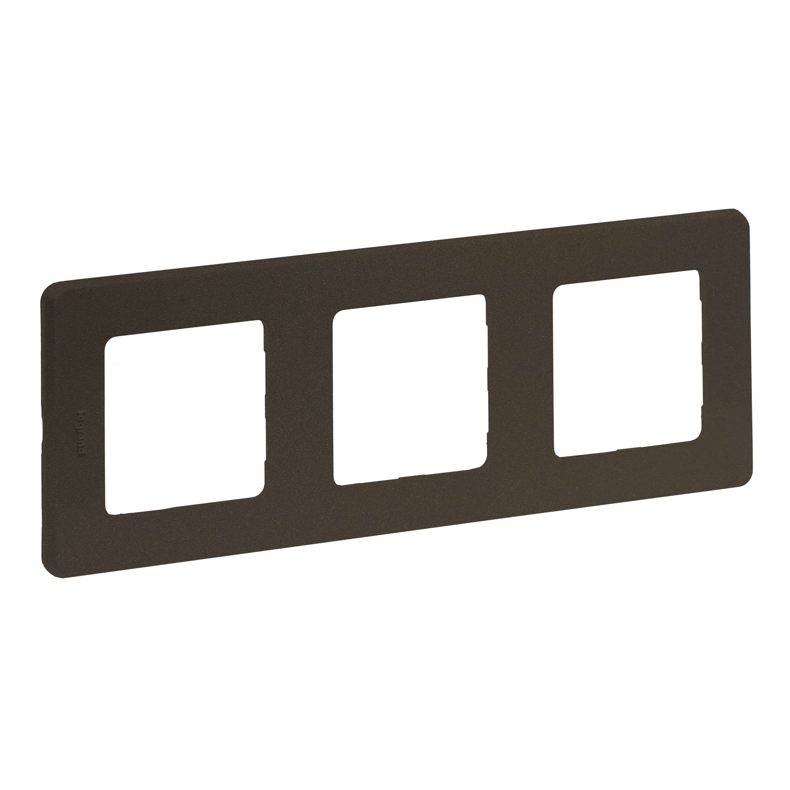 Рамка декоративная универсальная Legrand Inspiria, 3 поста, для горизонтальной или вертикальной установки, цвет Бронза. Предназначена для установки на механизмы Legrand Inspiria. Особенности изделия: - Изготовлено из качественного пластика ABS, устойчивого к загрязнению и воздействию УФ-излучения. - Универсальная конструкция подходит для горизонтального и вертикального монтажа. - Инновационное крепление на защелках обеспечивает быстрый монтаж и демонтаж без необходимости снятия лицевых панелей механизмов, что повышает удобство и снижает трудозатраты. - Система зубчатых креплений позволяет регулировать глубину установки рамки, тем самым скрыть неровность стен и дефекты установки монтажных коробок.