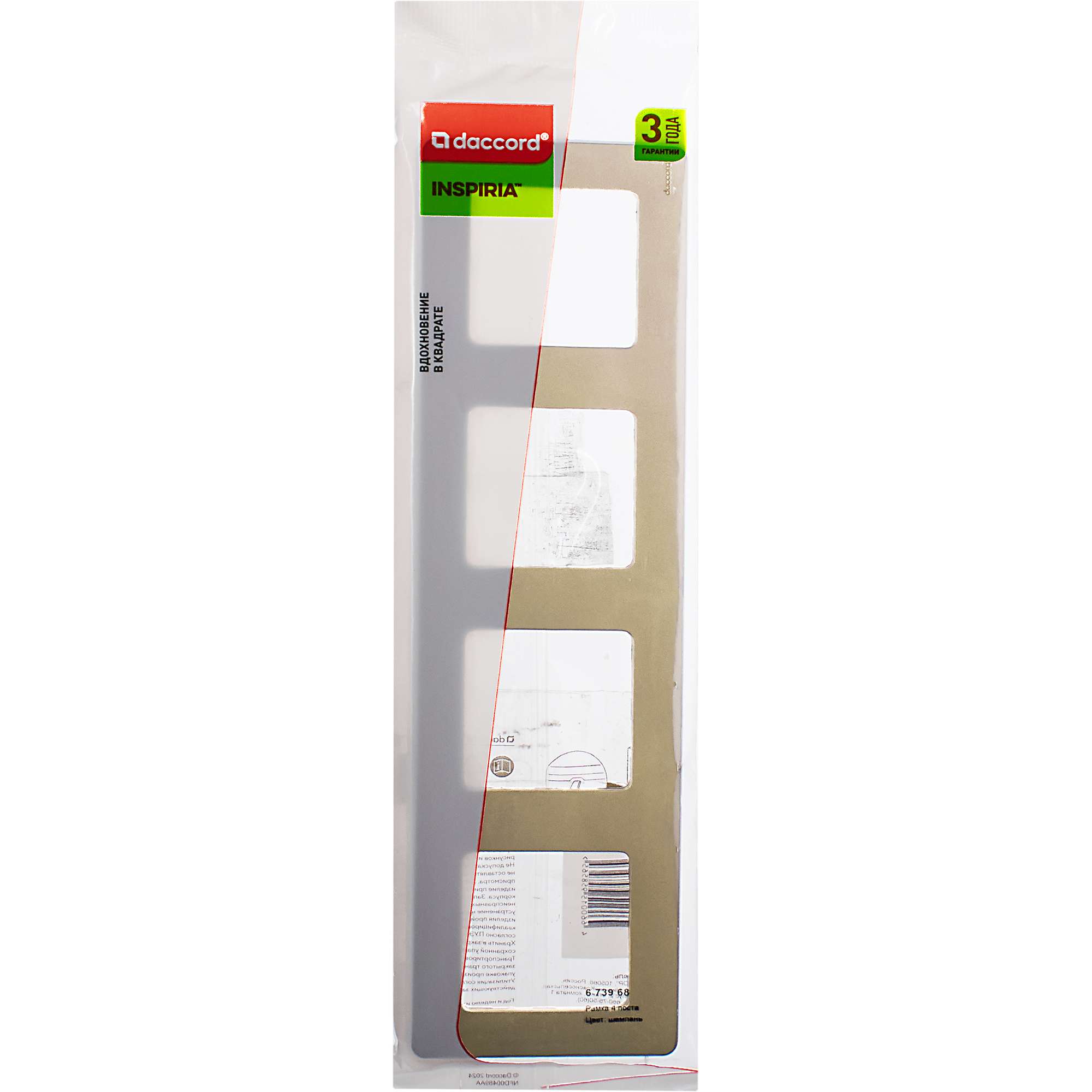 Рамка декоративная универсальная Legrand Inspiria, 4 поста, для горизонтальной или вертикальной установки, цвет Шампань. Предназначена для установки на механизмы Legrand Inspiria. Особенности изделия: - Изготовлено из качественного пластика ABS, устойчивого к загрязнению и воздействию УФ-излучения. - Универсальная конструкция подходит для горизонтального и вертикального монтажа. - Инновационное крепление на защелках обеспечивает быстрый монтаж и демонтаж без необходимости снятия лицевых панелей механизмов, что повышает удобство и снижает трудозатраты. - Система зубчатых креплений позволяет регулировать глубину установки рамки, тем самым скрыть неровность стен и дефекты установки монтажных коробок.