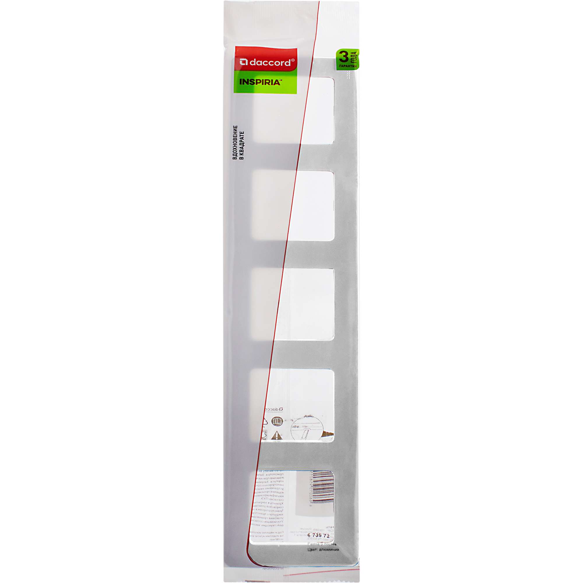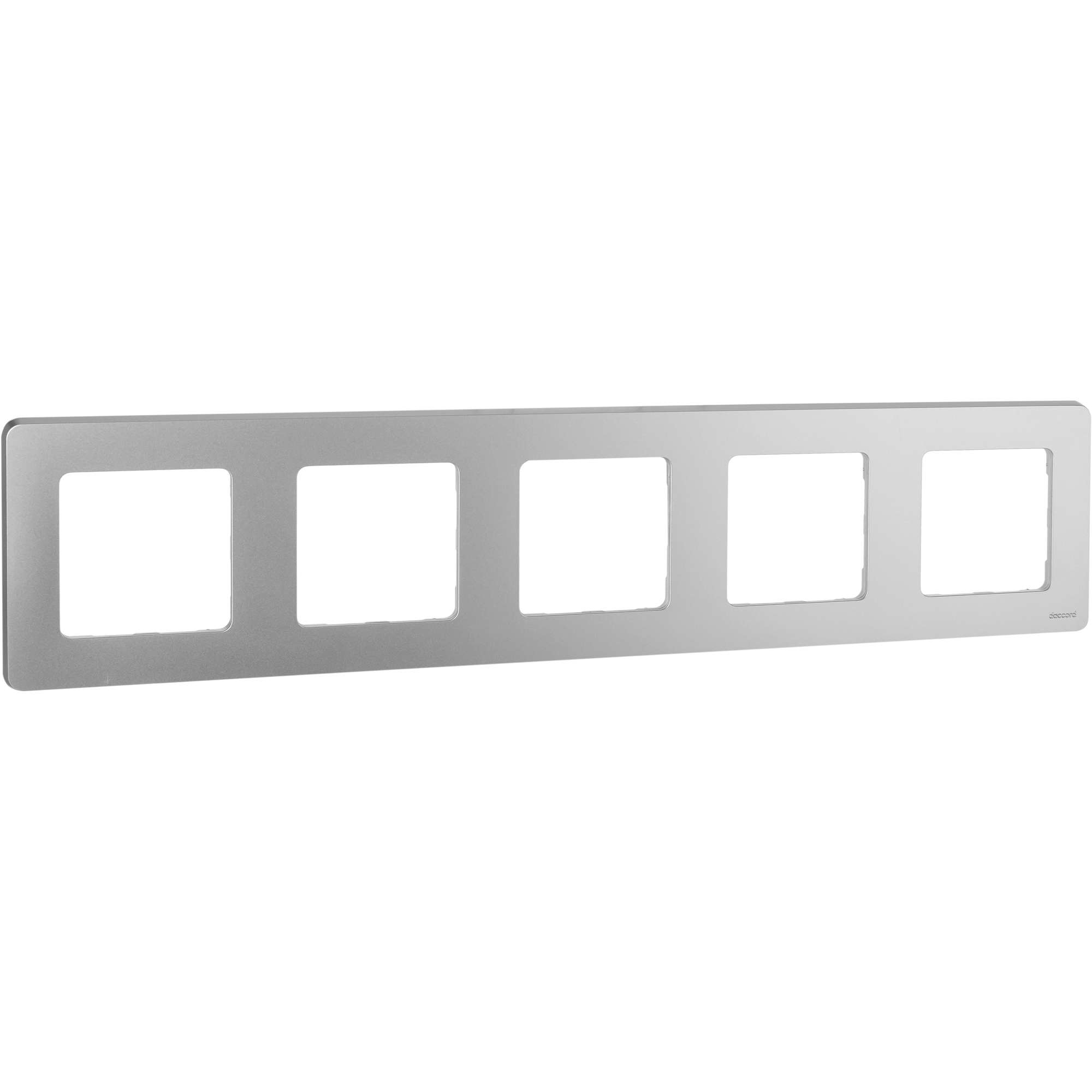 Рамка декоративная универсальная Legrand Inspiria, 5 постов, для горизонтальной или вертикальной установки, цвет Алюминий. Предназначена для установки на механизмы Legrand Inspiria. Особенности изделия: - Изготовлено из качественного пластика ABS, устойчивого к загрязнению и воздействию УФ-излучения. - Универсальная конструкция подходит для горизонтального и вертикального монтажа. - Инновационное крепление на защелках обеспечивает быстрый монтаж и демонтаж без необходимости снятия лицевых панелей механизмов, что повышает удобство и снижает трудозатраты. - Система зубчатых креплений позволяет регулировать глубину установки рамки, тем самым скрыть неровность стен и дефекты установки монтажных коробок.