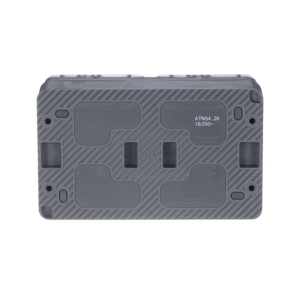 Розетка двойная с заземлением со шторками для открытого монтажа, 16А, 250В. Степень защиты IP:54, Степень защиты IK: IK08. Продукция AtlasDesign Profi54 созданы специально для тех мест, где требуется повышенная защита от влаги и пыли. Уютная веранда в загородном доме, уличное кафе, любимый гараж или мастерская – выключатели и розетки будут обеспечивать надежную защиту и радовать глаз современным дизайном. Элегантный цвет антрацит гармонично впишется в любую обстановку.