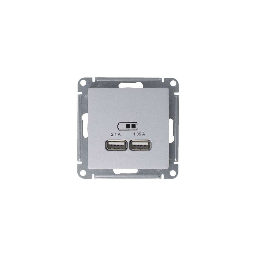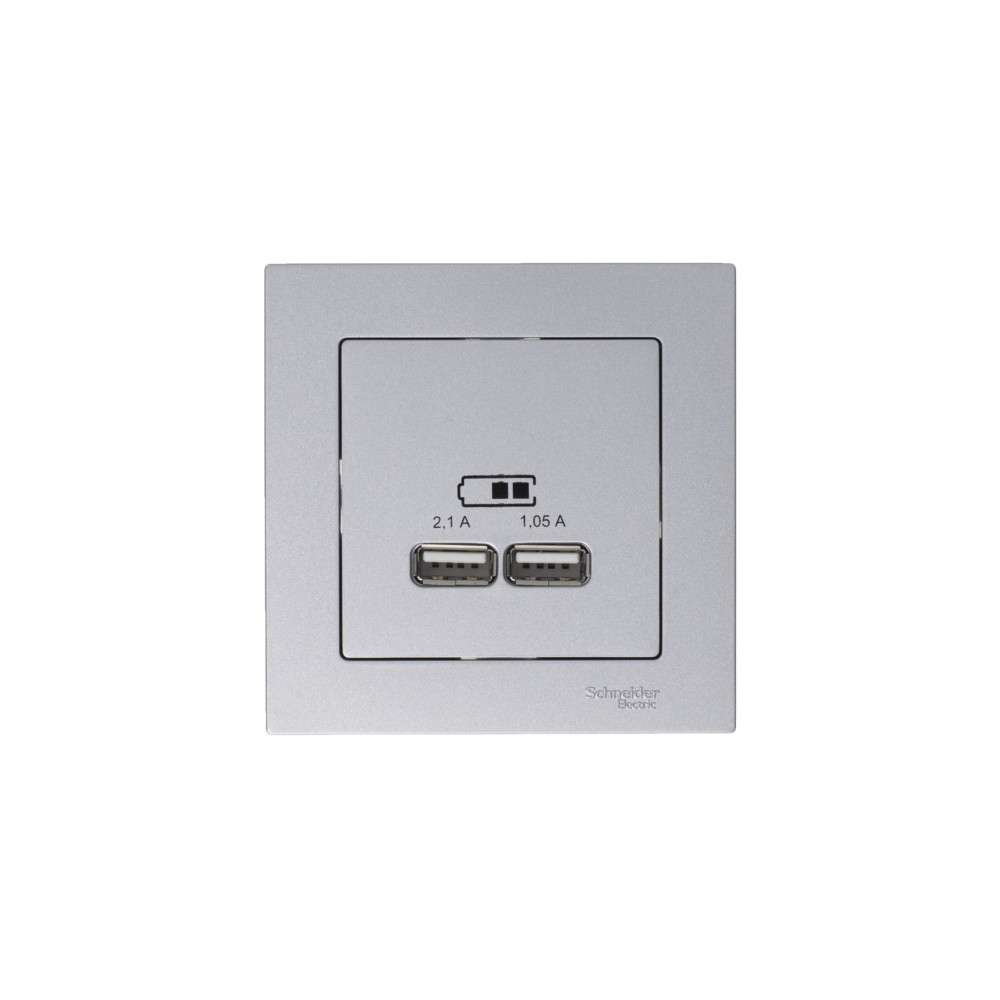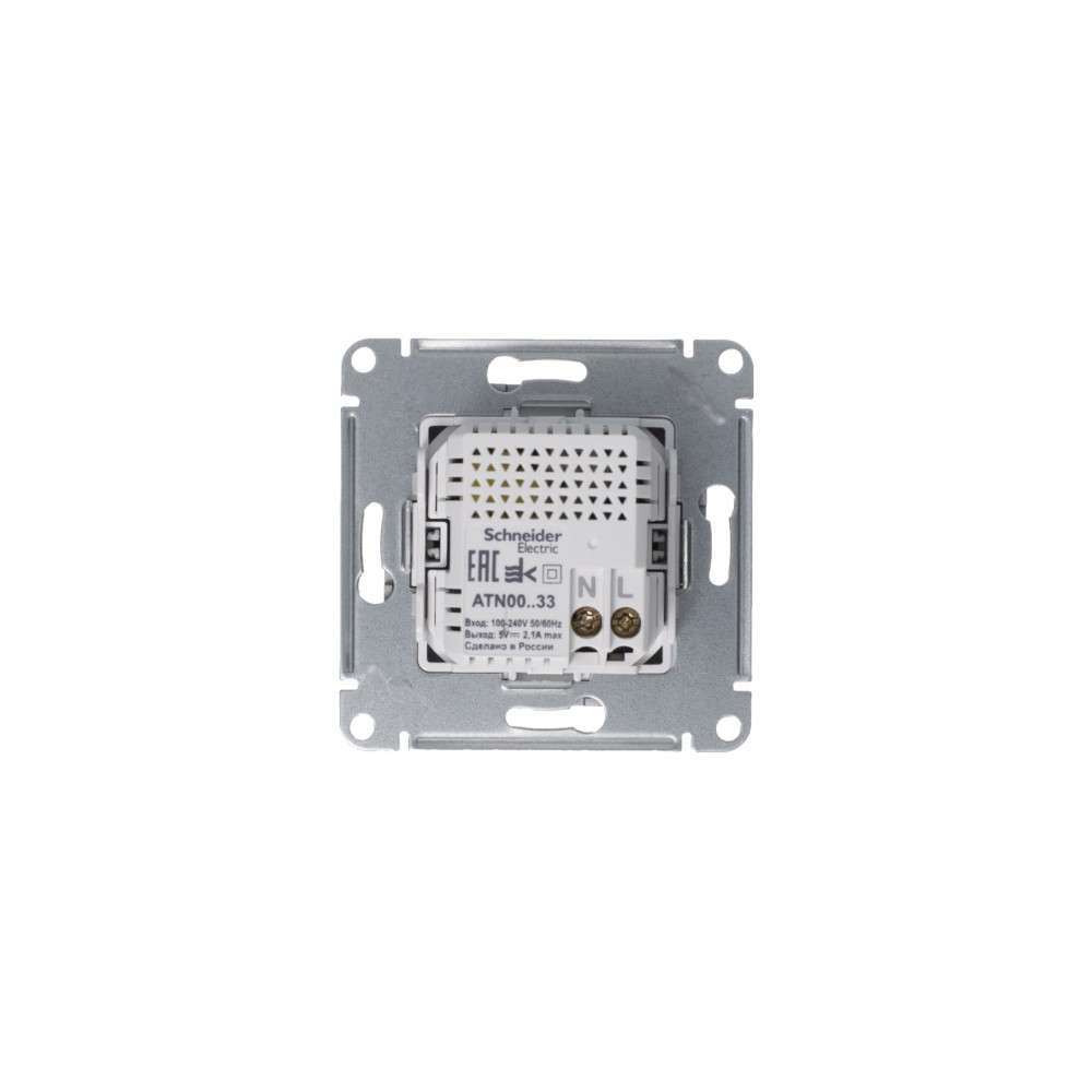 Механизм Systeme Electric (ранее Schneider Electric) серии AtlasDesign в цвете жемчуг розетки для зарядки с двумя разъёмами USB с выходными напряжением 5 В постоянного тока и выходами с номинальным током по 2,1 А. - USB розетка позволяет напрямую заряжать одно или два мобильных устройства. - Лицевые детали из качественного ABS-пластика, устойчивого к царапинам и УФ-излучению. - Усиленные прямые монтажные лапки для лучшей фиксации механизма в монтажной коробке.