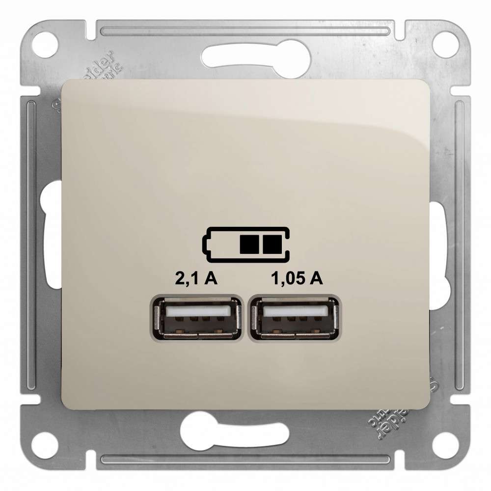 Механизм Systeme Electric (ранее Schneider Electric) серии AtlasDesign в цвете белый розетки для зарядки с двумя разъёмами USB с выходными напряжением 5 В постоянного тока и выходами с номинальным током по 2,1 А. - Пластик с ионами серебра в белом цвете обеспечивает антибактериальный эффект. - USB розетка позволяет напрямую заряжать одно или два мобильных устройства. - Лицевые детали из качественного ABS-пластика, устойчивого к царапинам и УФ-излучению. - Усиленные прямые монтажные лапки для лучшей фиксации механизма в монтажной коробке.
