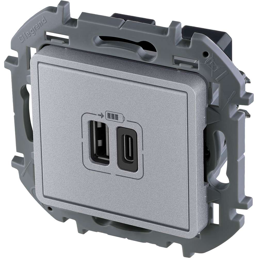 Зарядное устройство Legrand Inspiria для скрытого монтажа , тип А-тип С, цвет Алюминий. Напряжение 240В/=5В, максимальный зарядный ток 3000 мА. Применяется для непосредственной зарядки одного или двух мобильных устройств. Особенности изделия: - Увеличенный до 3000мА зарядный ток способствует сокращению времени заряда мобильных устройств. - Разьемы двух стандартов - классический тип А и современный реверсивный тип С для максимальной гибкости и совместимости с любыми гаджетами. - Возможна одновременная зарядка двух устройств - Стандартное подключение к электросети двумя проводами (фаза и нейтраль) позволяет легко заменить стандартную электрическую розетку - Подсоединение проводов электросети с помощью винтовых клемм.