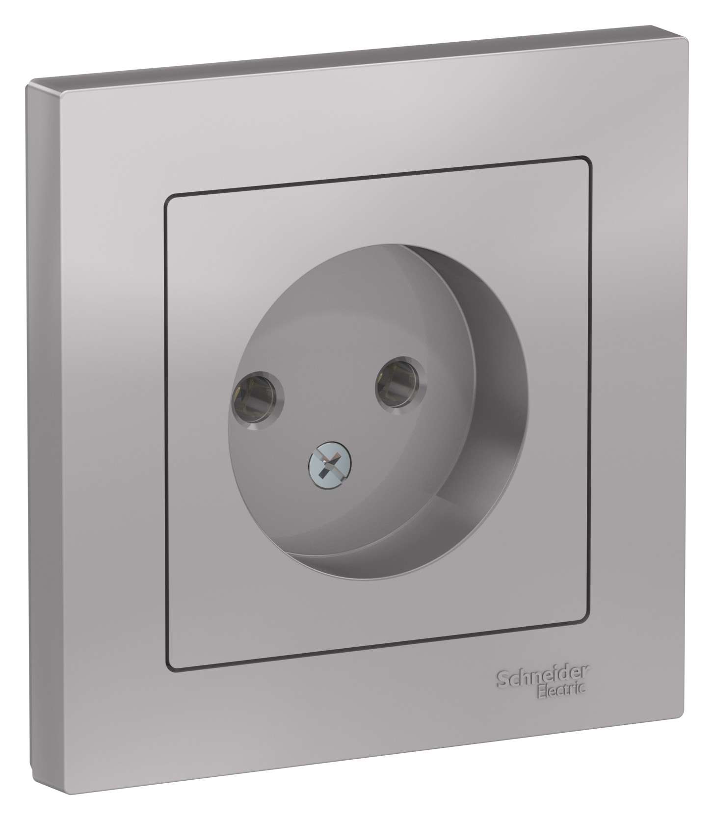 Розетка Systeme Electric (ранее Schneider Electric) серии AtlasDesign (в сборе, цвет алюминий) одинарная без заземления и без шторок подходит для сетей 250 В, на ток 16 А. - Лицевые детали из качественного ABS-пластика, устойчивого к царапинам и УФ-излучению. - Изделие поставляется в комплекте с рамкой того же цвета. - Усиленные прямые монтажные лапки для лучшей фиксации механизма в монтажной коробке.
