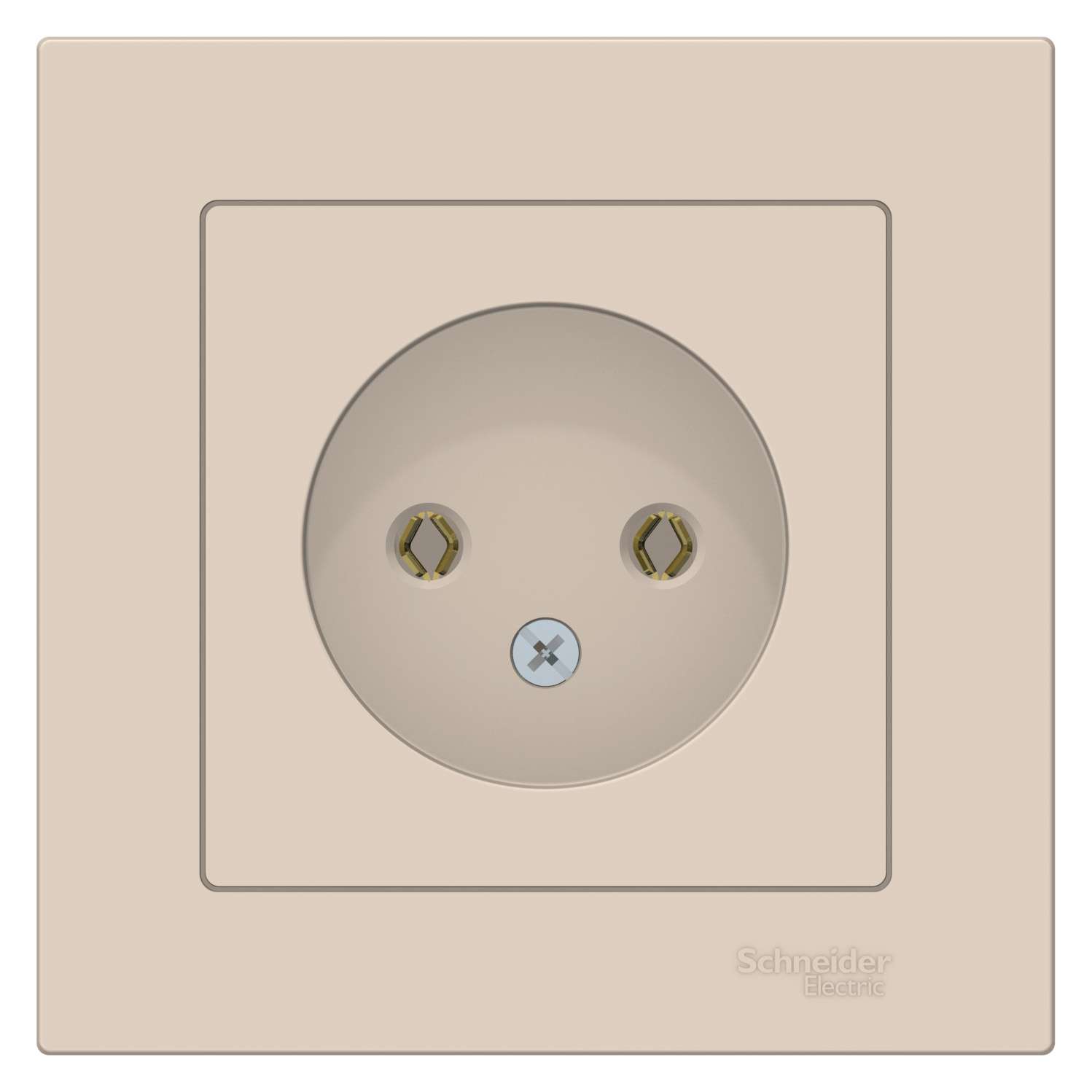 Розетка Systeme Electric (ранее Schneider Electric) серии AtlasDesign (в сборе, цвет бежевый) одинарная без заземления и без шторок подходит для сетей 250 В, на ток 16 А. - Лицевые детали из качественного ABS-пластика, устойчивого к царапинам и УФ-излучению. - Изделие поставляется в комплекте с рамкой того же цвета. - Усиленные прямые монтажные лапки для лучшей фиксации механизма в монтажной коробке.