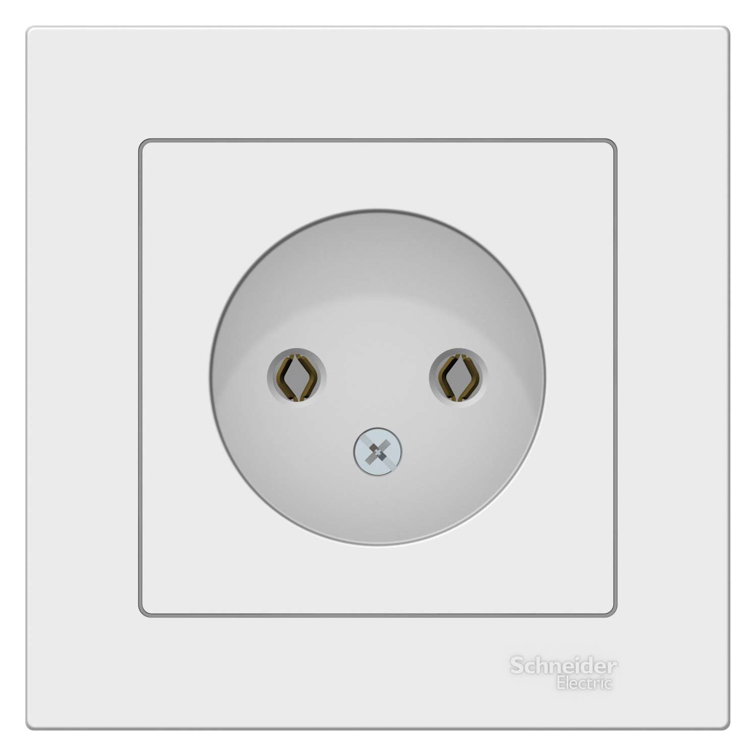 Розетка Systeme Electric (ранее Schneider Electric) серии AtlasDesign (в сборе, цвет белый) одинарная без заземления и без шторок подходит для сетей 250 В, на ток 16 А. - Пластик с ионами серебра в белом цвете обеспечивает антибактериальный эффект. - Лицевые детали из качественного ABS-пластика, устойчивого к царапинам и УФ-излучению. - Изделие поставляется в комплекте с рамкой того же цвета. - Усиленные прямые монтажные лапки для лучшей фиксации механизма в монтажной коробке.