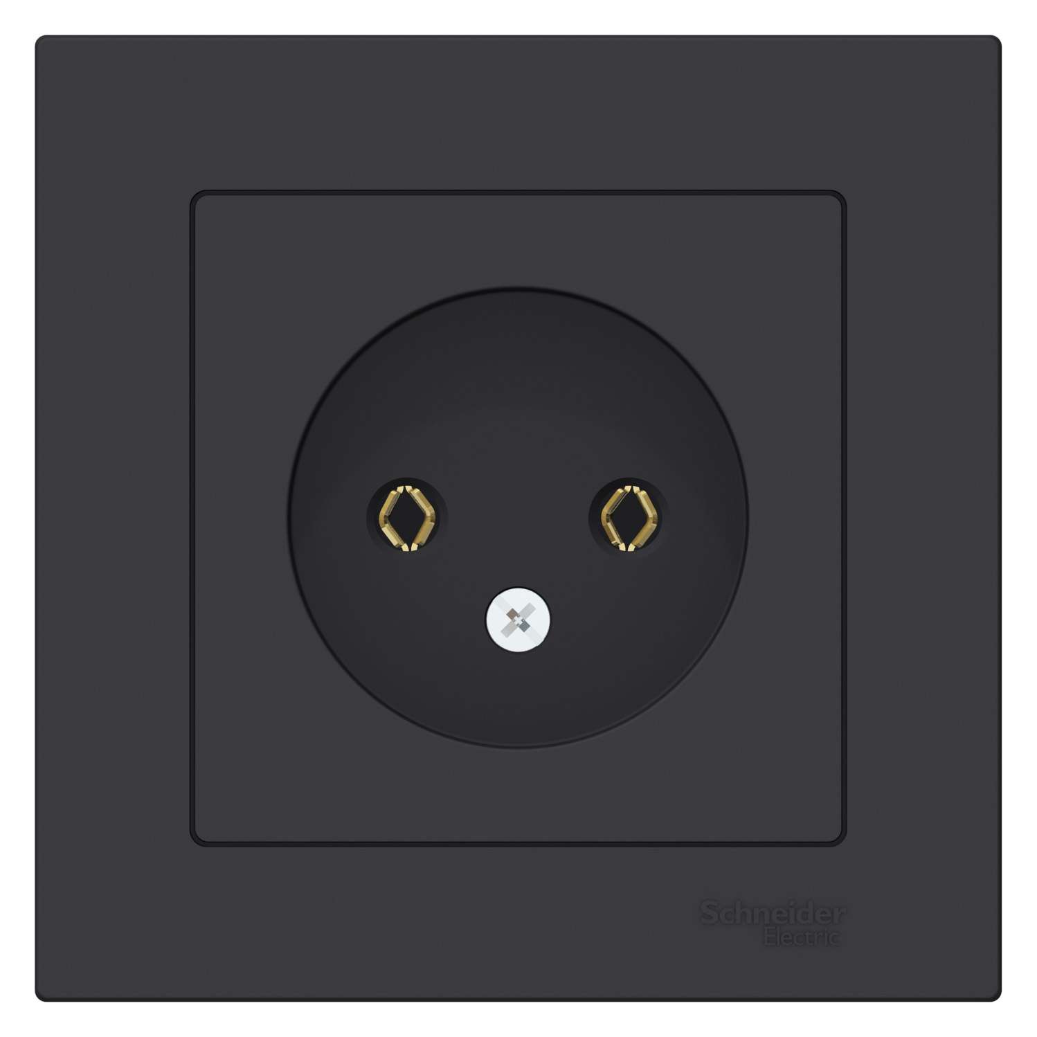 Розетка Systeme Electric (ранее Schneider Electric) серии AtlasDesign (в сборе, цвет карбон) одинарная без заземления и без шторок подходит для сетей 250 В, на ток 16 А. - Лицевые детали из качественного ABS-пластика, устойчивого к царапинам и УФ-излучению. - Изделие поставляется в комплекте с рамкой того же цвета. - Благодаря покрытию «soft touch» к изделию приятно прикасаться.