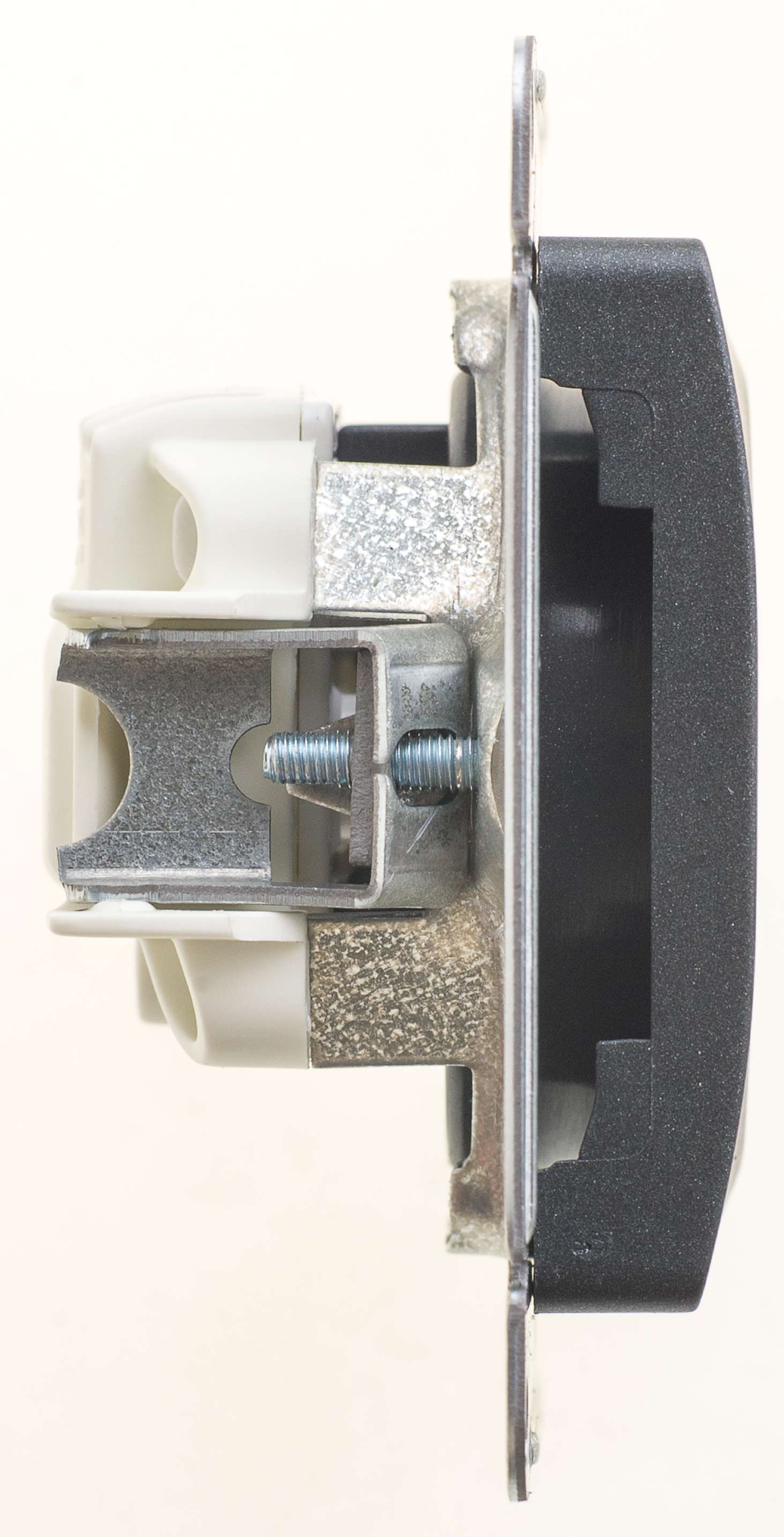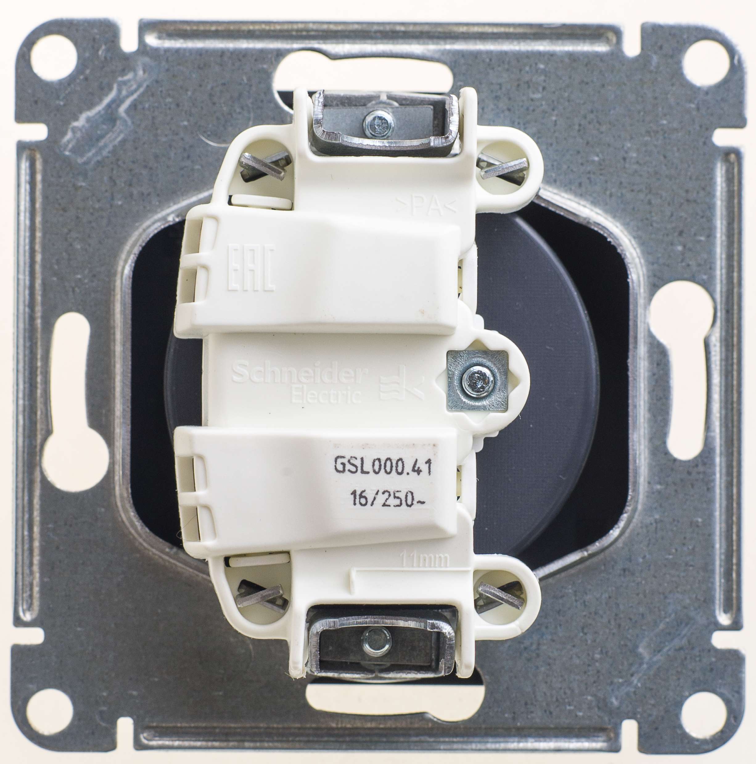 Механизм Systeme Electric (ранее Schneider Electric) серии Glossa (цвет антрацит) розетки одинарной без заземления и без шторок подходит для сетей 250 В, на ток 16 А. - Выполнен из материала PС+ASA, стойкого к УФ-излучению и появлению царапин. - Эргономичные клеммы розеток расположены в один ряд.