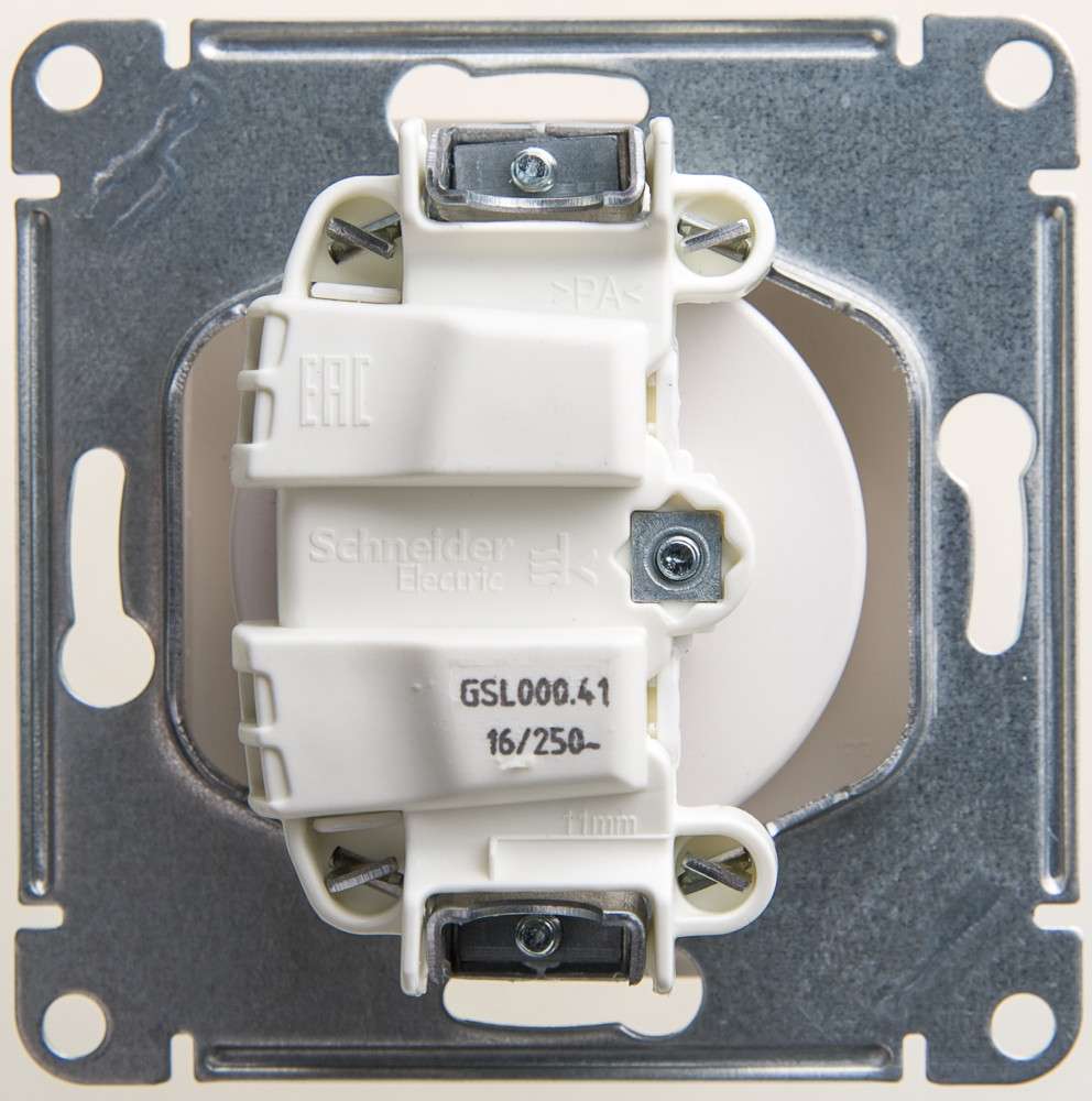 Механизм Systeme Electric (ранее Schneider Electric) серии Glossa (цвет перламутр) розетки одинарной без заземления и без шторок подходит для сетей 250 В, на ток 16 А. - Выполнен из материала PС+ASA, стойкого к УФ-излучению и появлению царапин. - Эргономичные клеммы розеток расположены в один ряд.
