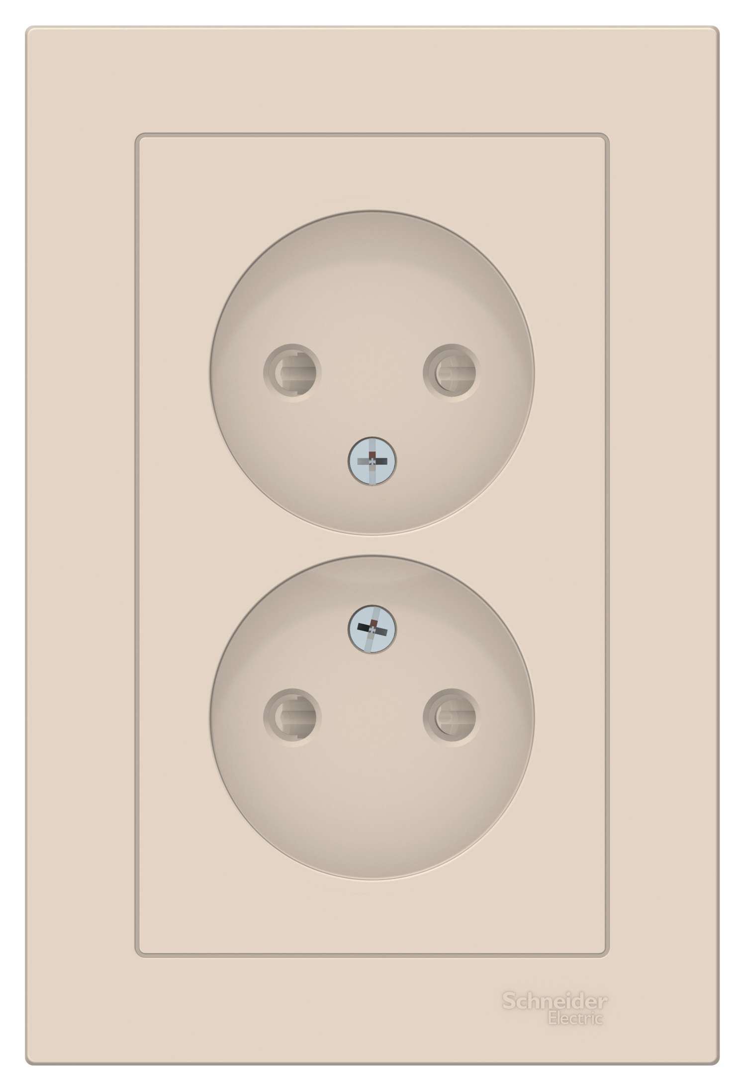 Розетка двойная Systeme Electric (ранее Schneider Electric) серии AtlasDesign (в сборе, цвет бежевый) без заземления со шторками подходит для сетей 250 В, на ток 16 А. - Лицевые детали из качественного ABS-пластика, устойчивого к царапинам и УФ-излучению. - Усиленные прямые монтажные лапки для лучшей фиксации механизма в монтажной коробке. - Двойная розетка позволяет подключить два устройства в одном месте. - Изделие поставляется в комплекте с рамкой того же цвета.
