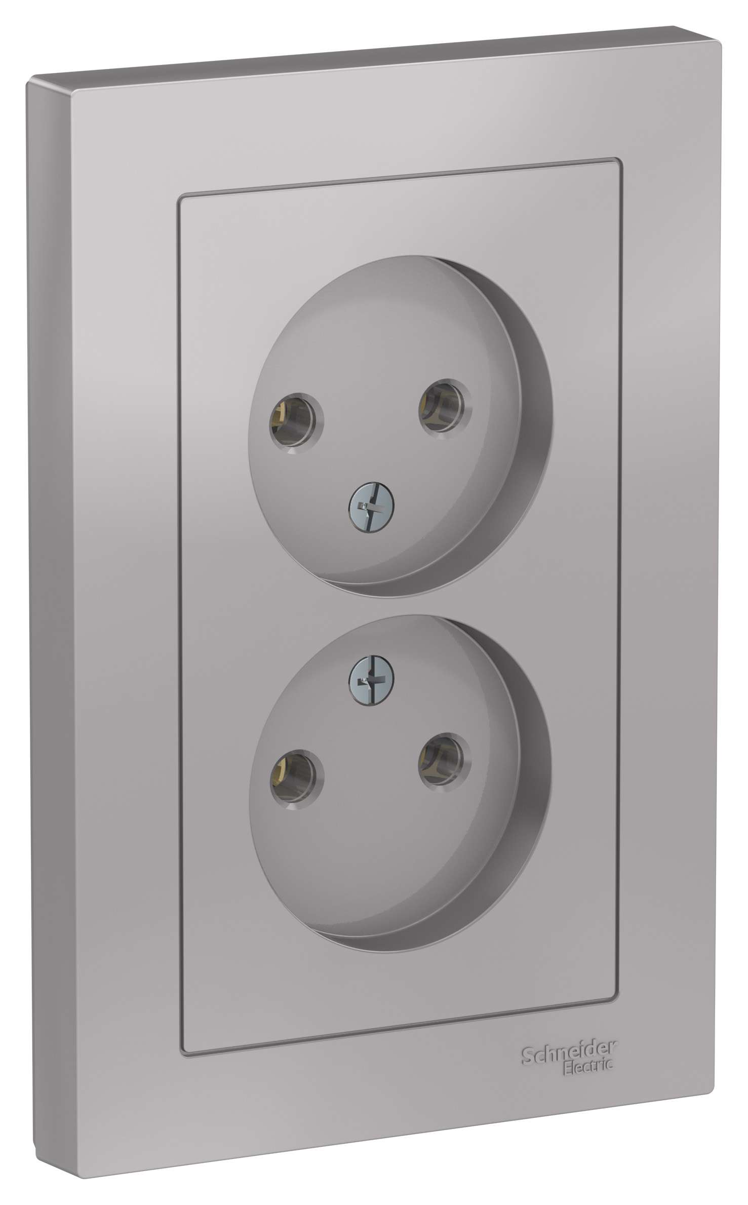 Розетка двойная Systeme Electric (ранее Schneider Electric) серии AtlasDesign (в сборе, цвет алюминий) без заземления и без шторок подходит для сетей 250 В, на ток 16 А. - Лицевые детали из качественного ABS-пластика, устойчивого к царапинам и УФ-излучению. - Усиленные прямые монтажные лапки для лучшей фиксации механизма в монтажной коробке. - Двойная розетка позволяет подключить два устройства в одном месте. - Изделие поставляется в комплекте с рамкой того же цвета.