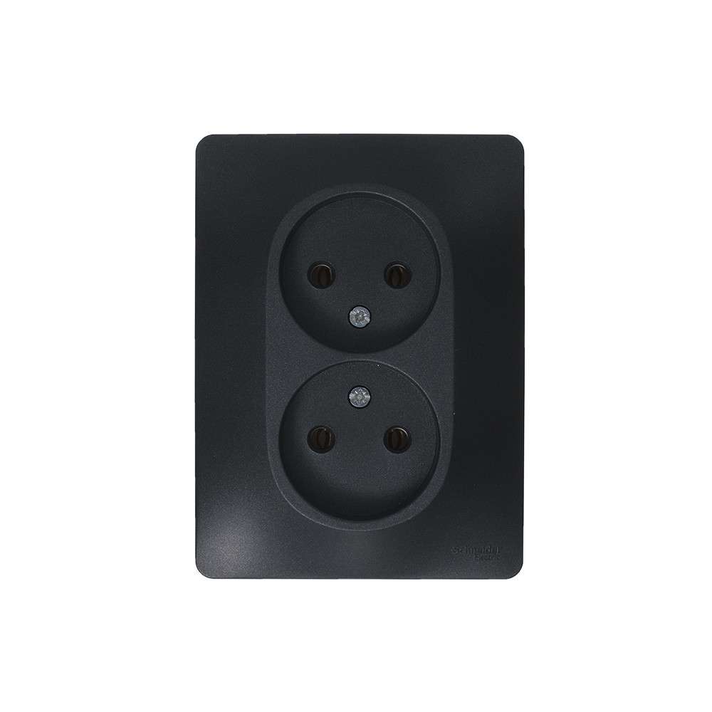 Розетка двойная Systeme Electric (ранее Schneider Electric) серии Glossa (в сборе, цвет антрацит) без заземления и без шторок подходит для сетей 250 В, на ток 16 А. - Выполнен из материала PС+ASA, стойкого к УФ-излучению и появлению царапин. - Эргономичные клеммы розеток расположены в один ряд. - Двойная розетка позволяет подключить два устройства в одном месте.